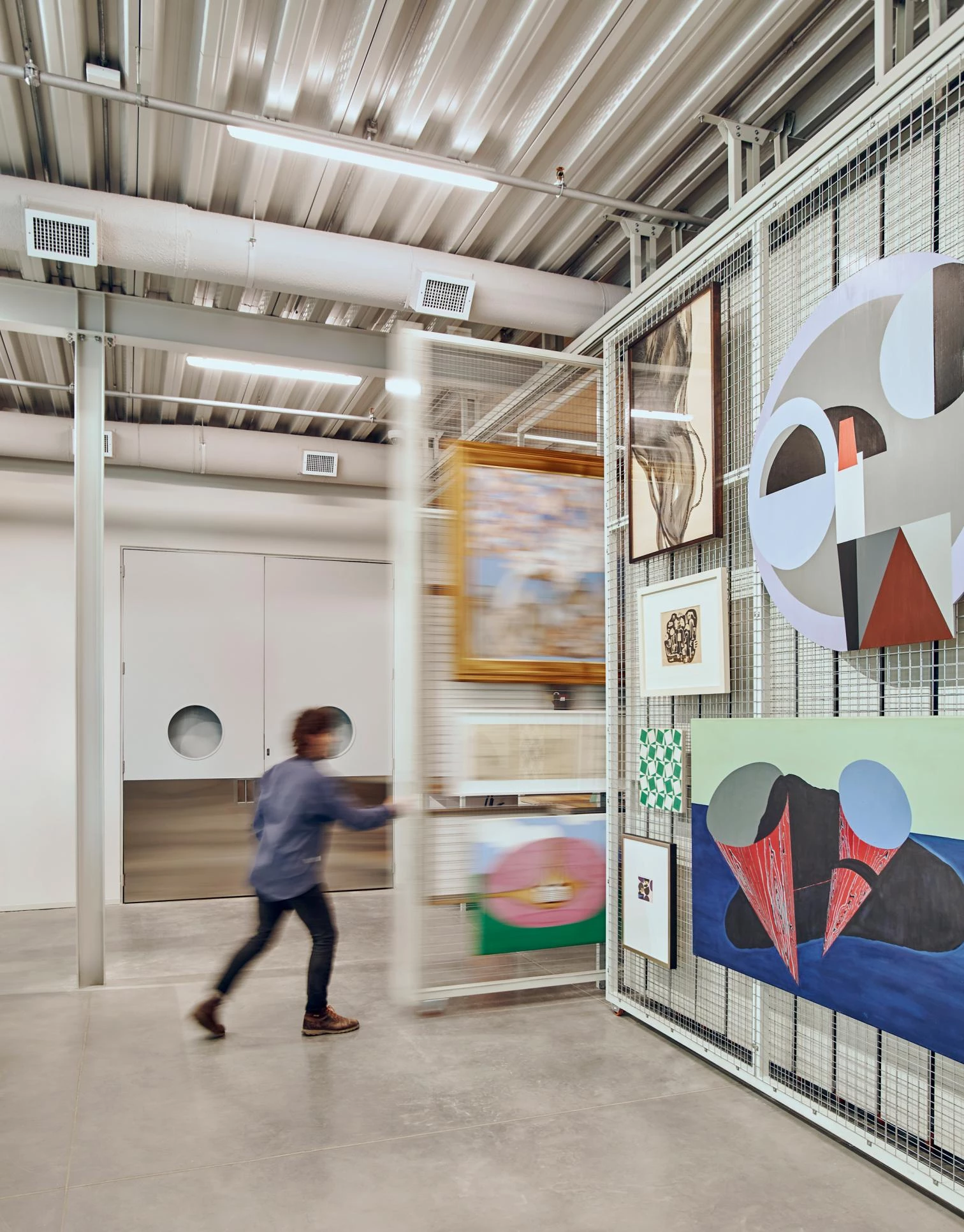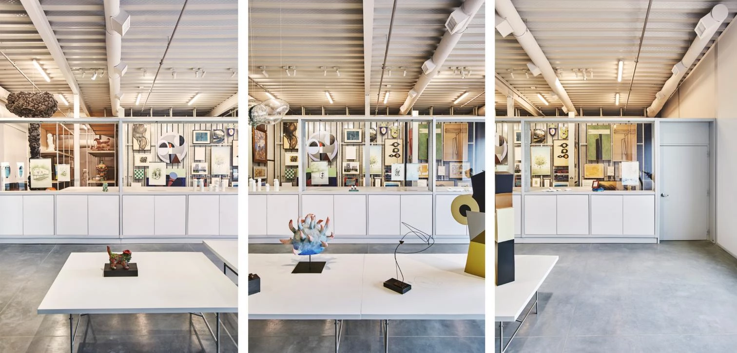 Esta amplia cubierta protege los tres pabellones que contienen entre otros espacios: una galería de exposiciones y una tienda; un depósito de obras de arte visitable, una sala polivalente y una cafetería; y un volumen vidriado que aloja una instalación escultórica permanente del artista tucumano Gabriel Chaile. Los pabellones son prismas que presentan estructuras perimetrales repetitivas de soportes de acero y paneles de cemento.