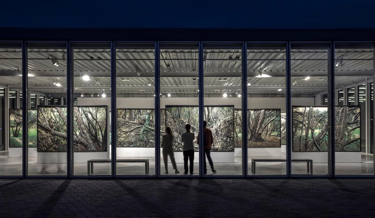 El proyecto superpone tres modelos expositivos: un bosque de alisos cuyos claros actúan como salas expositivas; un circuito de esculturas al aire libre; y un conjunto de tres pabellones intercalados con plazas que, bajo una misma cubierta, conforman el corazón del proyecto.