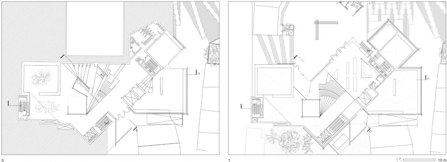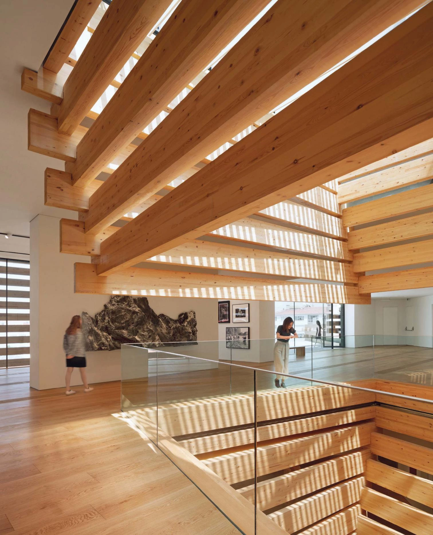 En el interior, un gran atrio con forma de prisma torsionado conecta entre sí los diferentes niveles y permite que la luz natural acceda desde el techo. Además de generar una imagen representativa, el uso de la madera hace referencia a la historia del lugar ya que Odunpazari en turco significa ‘mercado de leña’. La precisión de los detalles constructivos y la radicalidad de los encuentros contribuyen a enfatizar su carácter escultórico, por lo que el edificio se convierte en la primera pieza del museo.