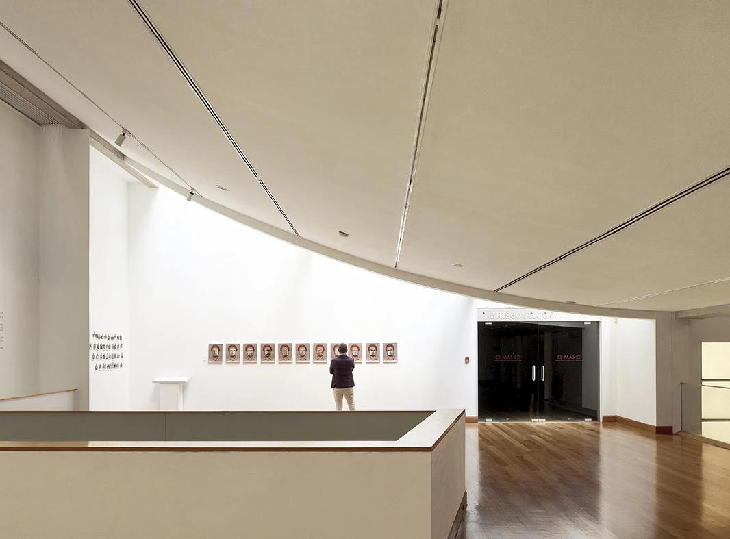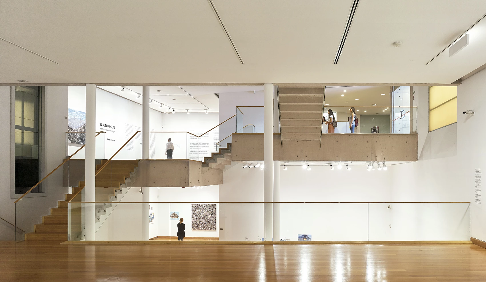 El acceso tiene lugar bajo el portal de la casona antigua. Este espacio, atento a las nuevas circunstancias, se transforma en el atrio del edificio. En el interior, un vacío central luminoso concentra las circulaciones verticales, y a la vez articula los distintos niveles de las salas. Estos planos horizontales se despliegan mediante el recurso de medias plantas enfrentadas, permitiendo fragmentar las exposiciones, al tiempo que las vistas diagonales ascendentes y descendentes entregan una visión amplia y total del espacio.