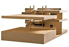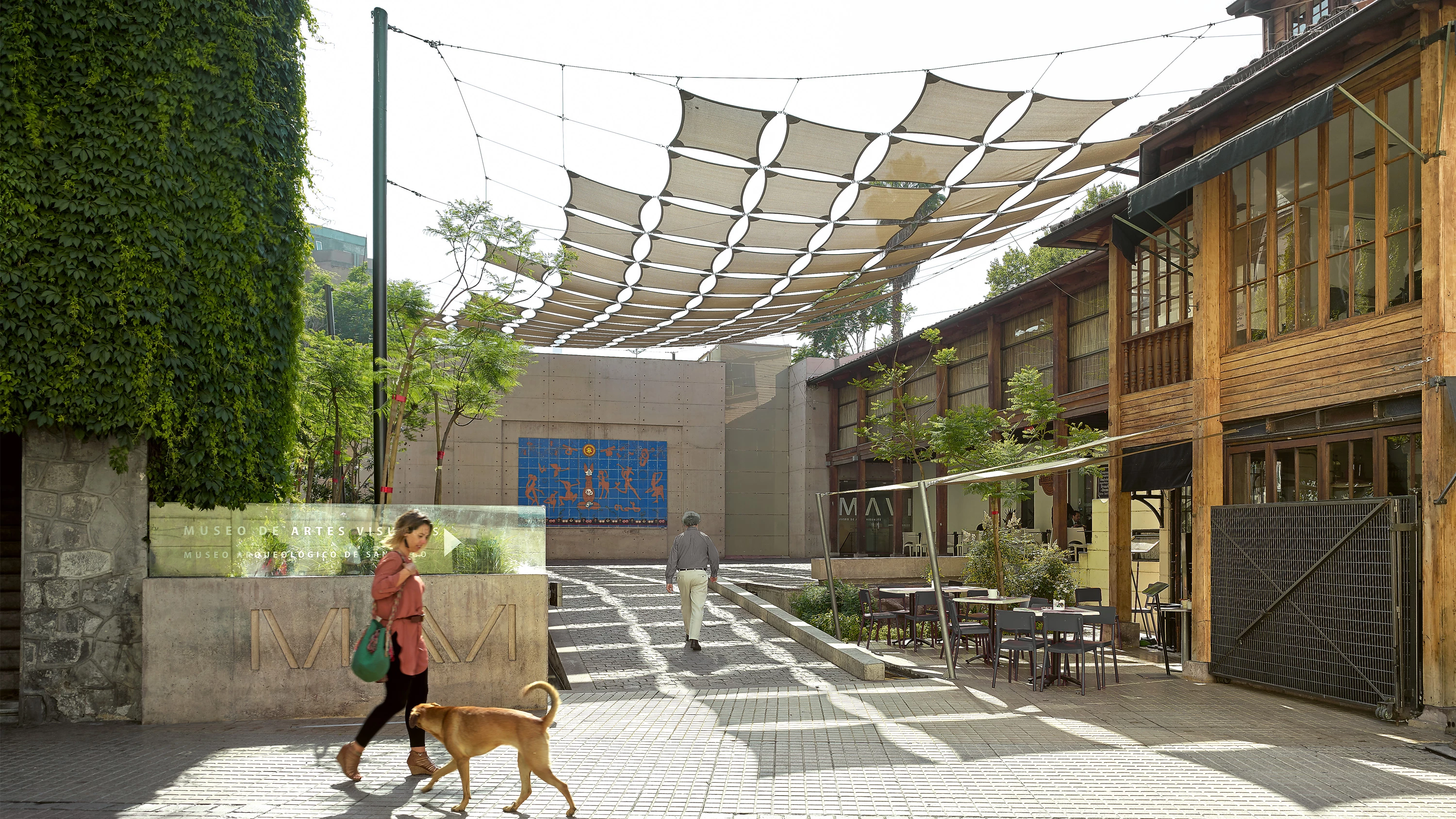 En este denso contexto patrimonial, al final de la calle Lastarria surge una pequeña plazoleta, casi una anomalía que interrumpe la continuidad de las fachadas historicistas de principios del siglo XX. Al fondo de este rincón urbano se ubica el MAVI, que alberga una valiosa colección de pintura y escultura contemporánea de artistas chilenos. El pequeño edificio toma la forma de un paralelepípedo compacto de hormigón, predeterminado por la estrechez del terreno. Considerando la proporción del vacío urbano, se optó por restringir la altura del museo, de forma que no doblegara, con su presencia, las viejas casonas existentes. Esto obligó a multiplicar el espacio inscrito al interior del pabellón, abriéndolo hacia un subterráneo que da cabida al programa requerido.