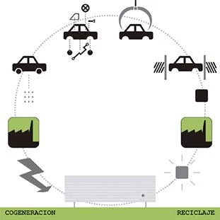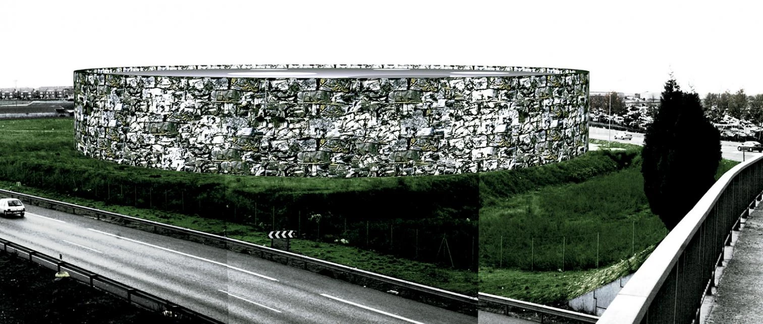 La fachada está constituida por ‘sillares’ modelados a partir de restos de los objetos expuestos en el interior del museo: las carrocerías de los automóviles que, tras perder su uso y ser despojadas del motor y del resto de las piezas recuperables, serán limpiadas y aplastadas para formar parte esencial del cerramiento. La utilización de coches prensados como material de fachada supondrá no sólo la incorporación de un elemento que active la memoria del visitante, sino que representará una actitud activa frente al proceso de reciclado, una acción real de creación a partir de lo desechado.