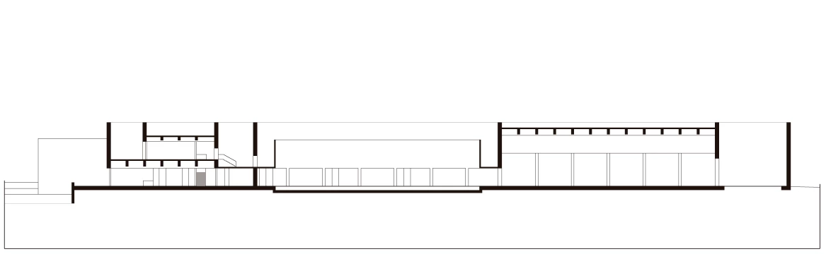 La colección permanente y las salas de exposiciones temporales presentan accesos independientes desde el vestíbulo. Las zonas limítrofes con el paisaje colindante se cubren con vegetación densa en dirección a la edificación existente, lo que permite tan sólo un selectivo número de vistas al parque y a las colinas de los alrededores.