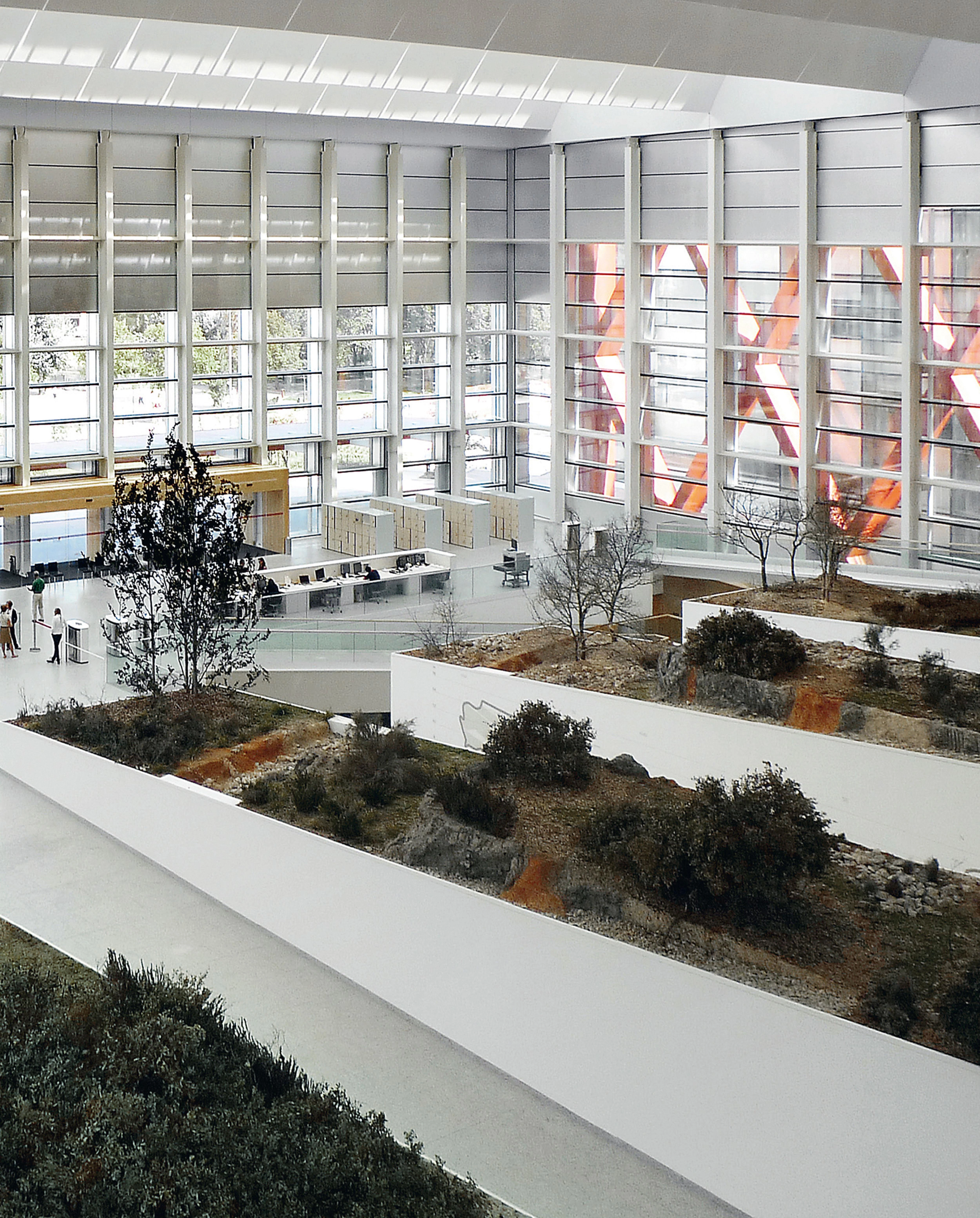 El espacio central del museo es bañado por la luz que atraviesa la cubierta de vidrio, como si fuera un gran invernadero. En él destacan varios fragmentos de terreno entre los que se desarrolla parte de la exposición.