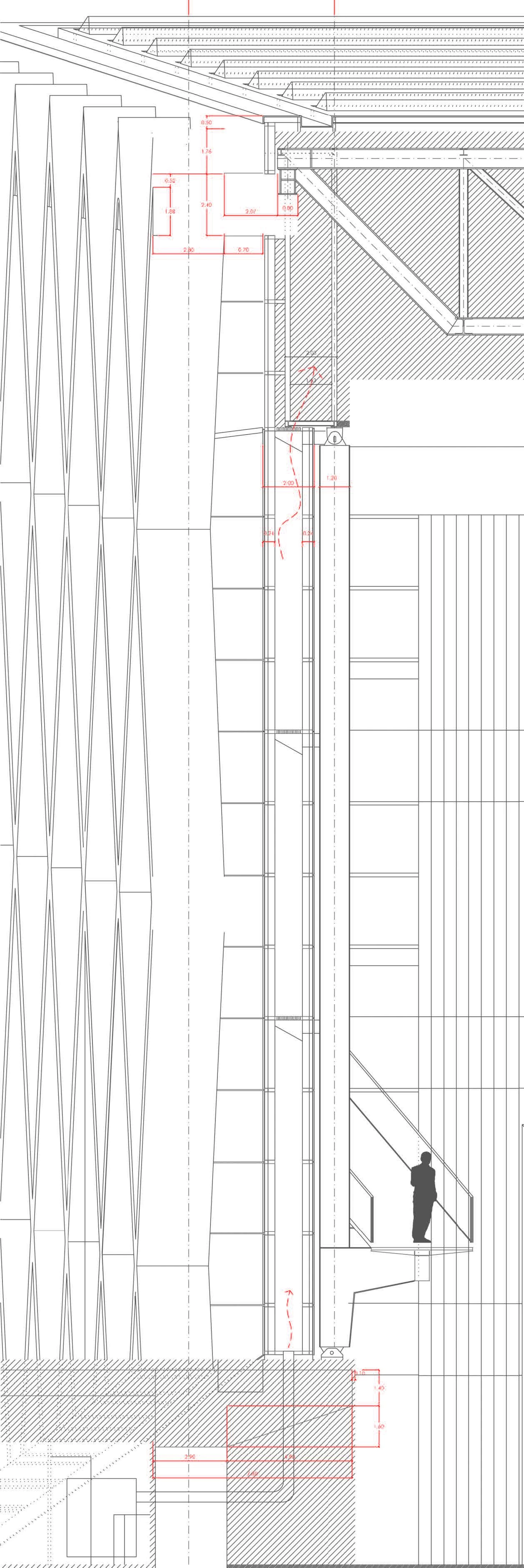 Estos dos últimos se separan del museo, que ocupa la posición central, por sendas hendiduras que dejan pasar la luz y que conectan la ribera con la zona urbana posterior, remitiendo, como se hará en el interior del museo, a las sensaciones espaciales que provoca la trinchera del ferrocarril de la Sierra de Atapuerca. Por otro lado, mientras que el museo se caracteriza al exterior por la celosía romboidal de color rojo de sus fachadas laterales, el Centro Nacional de Investigación, situado al este, se reviste en dos frentes con paneles verdes con rombos recortados, y el palacio de Exposiciones y Congresos, al oeste, cubre parte de su fachada con una doble piel formada por perfiles y chapa rojos, y chapa blanca recortada que perfila un dibujo abstracto.