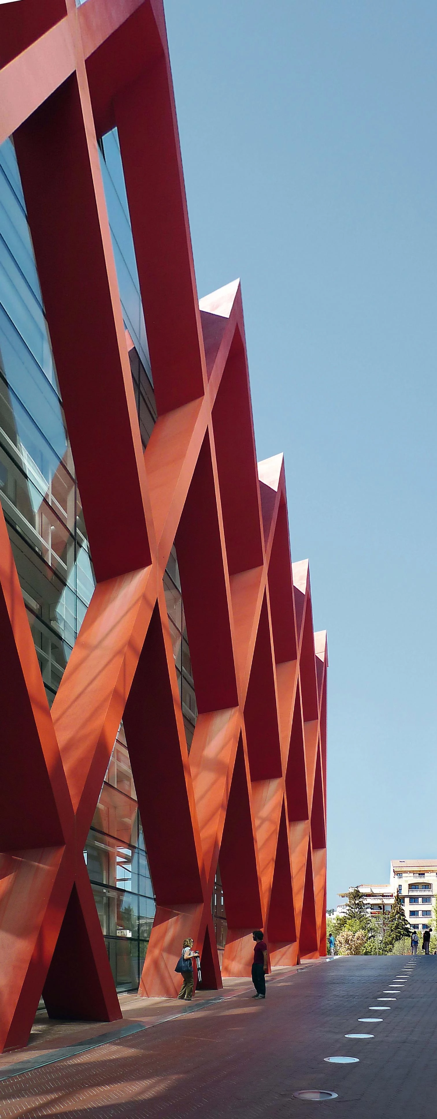 El Centro Nacional de Investigación y el Palacio de Exposiciones y Congresos, cuya puesta en marcha está próxima, se singularizan en cuanto a su apariencia exterior con chapas de colores y patrones diferentes.