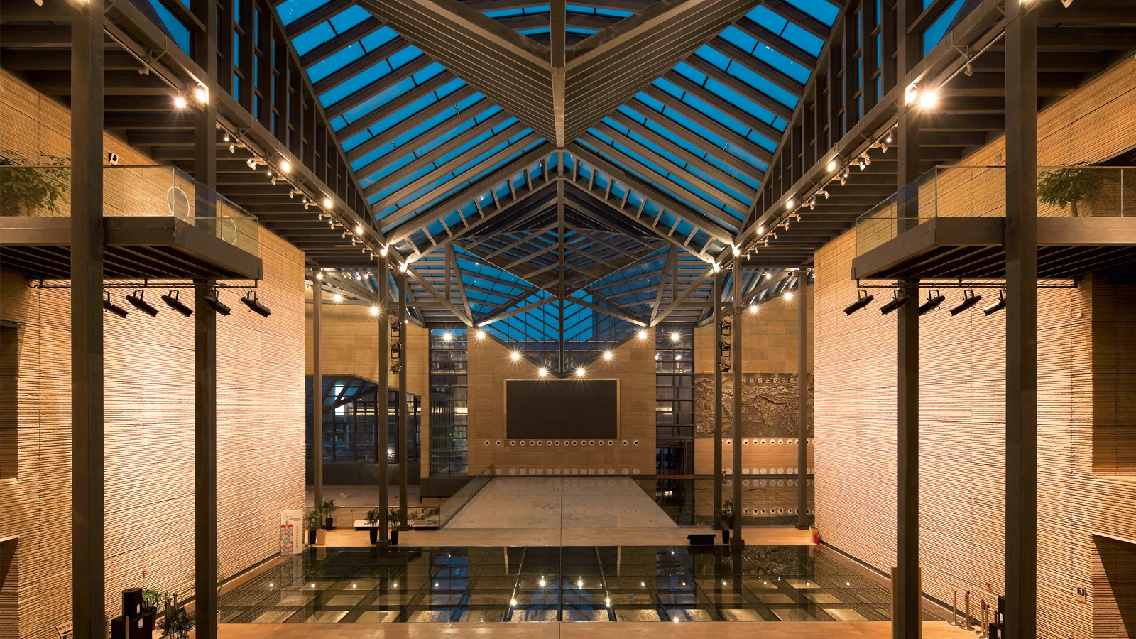 El museo se sitúa sobre uno de los nueve cuadrados en los que se ha dividido la parcela, también cuadrada, obedeciendo al típico patrón Jiugong. Su planta se organiza siguiendo la malla tradicional china Lifang, utilizada en la mayoría de las ciudades antiguas, y basada en un cuadrado de doce metros de lado. Los módulos resultantes se manifiestan autónomos, generando entre sí estrechos intersticios caracterizados por la textura dorada de los paneles de hormigón aligerado de los muros.