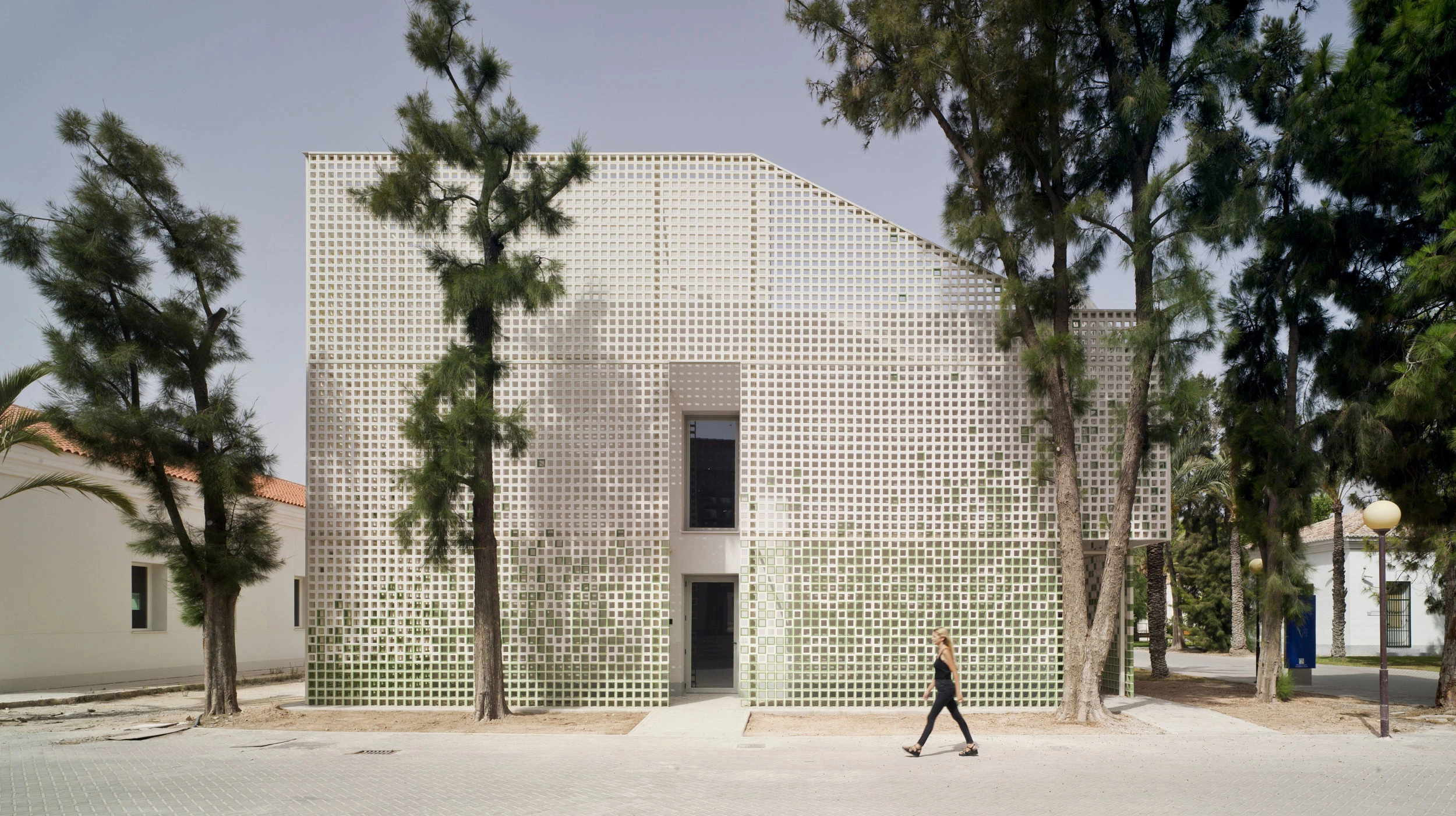 El complejo está formado por un pabellón de los años 1940 cuyo exterior únicamente se renueva, y un edificio racionalista, adosado en los 1980, que se cubre con una celosía cerámica a fin de dialogar con la antigua nave.