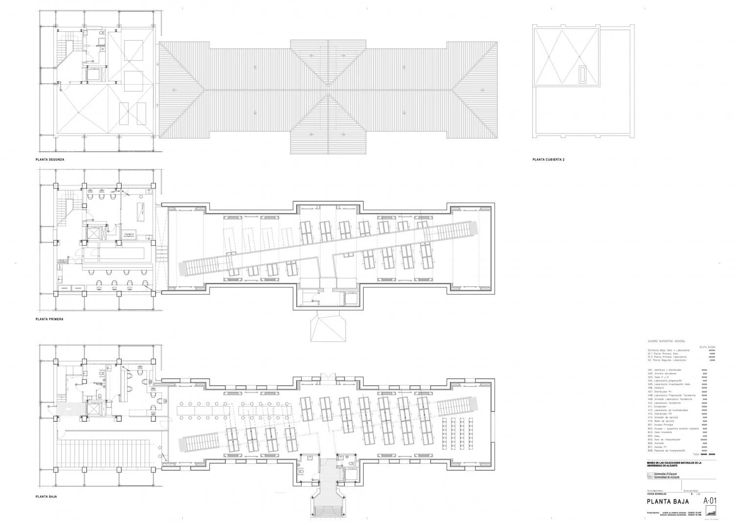 Con oficinas en Alicante, Elche y Albacete, el estudio COR Asociados Arquitectos —liderado por Miguel Rodenas y Jesús Olivares— ha sido el encargado de rehabilitar uno de los edificios más antiguos de la Universidad de Alicante para que albergue sus colecciones naturales. Con una superficie total de 797 metros cuadrados y un presupuesto de 1.334.945 euros, el complejo edificatorio está compuesto por una nave alargada con cubiertas a dos aguas y una construcción racionalista adosada en la década de 1970, que contiene de forma independiente los nuevos usos requeridos de exposición e investigación, respectivamente.
