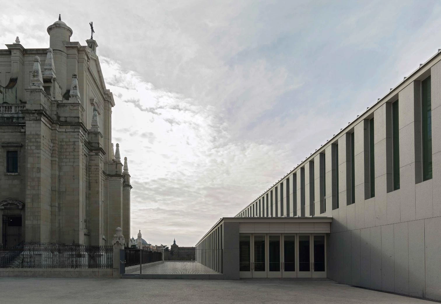 Se trata, por tanto, de hacer un edificio invisible desde la explanada que media entre la catedral y el Patio de Armas del Palacio Real, ocupando un lugar enterrado que aún no existía. El museo constituye un espacio lineal, sencillo y compacto, consciente de que la máxima flexibilidad sólo es posible dentro de un orden riguroso, y que toma los materiales del Palacio Real y la dignidad de su construcción como referente. Su disposición, plenamente contemporánea, resulta a la vez pesada y ligera, opaca y transparente.