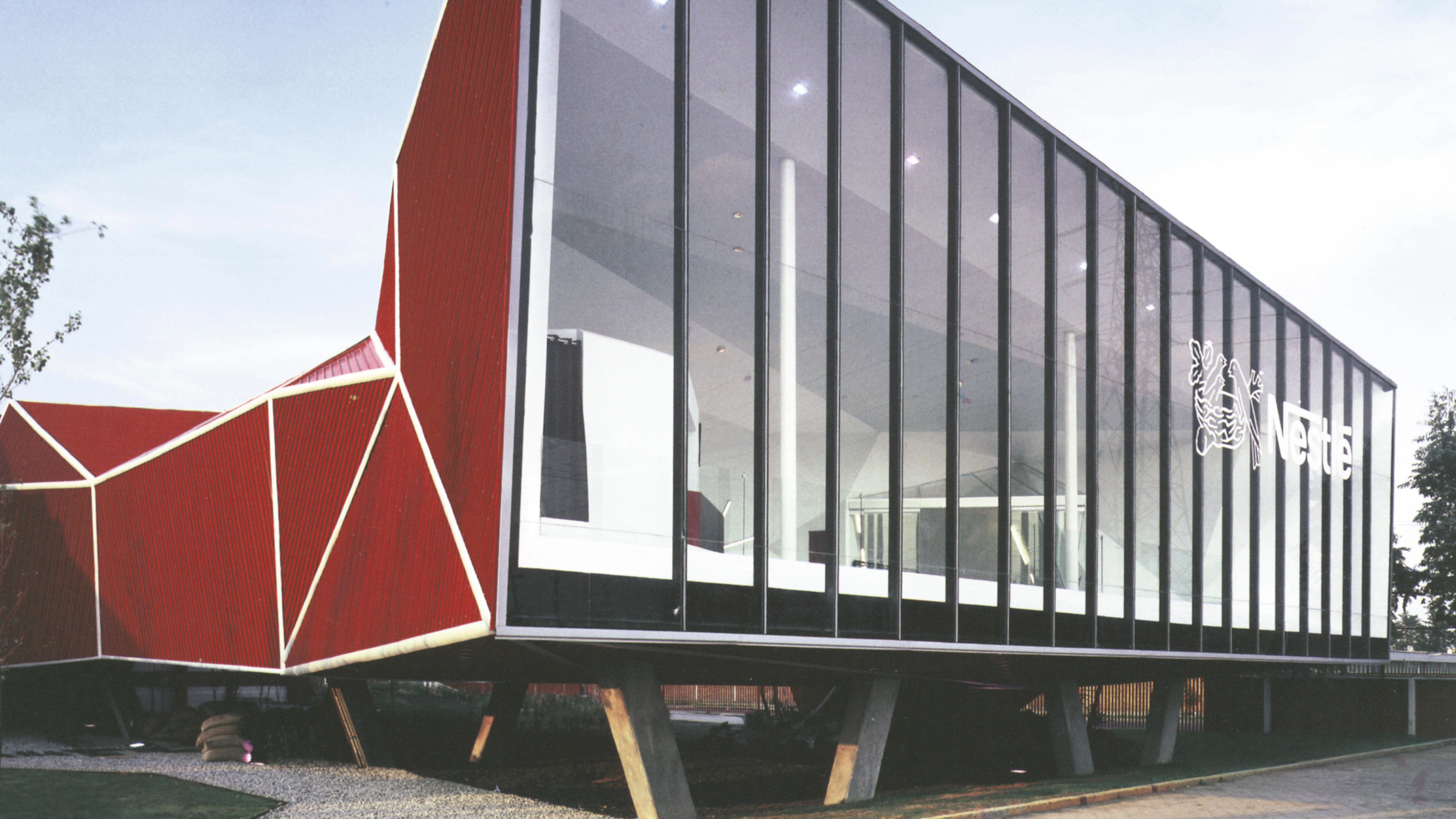 Situado a las afueras de la ciudad de Toluca, en el extremo de una anodina área industrial plagada de monótonos edificios prismáticos, se levanta el primer museo del chocolate construido por la firma suiza Nestlé. Ubicado junto a la fábrica, el nuevo edificio se ha concebido como una pieza de origami zigzagueante de color rojo de seiscientos metros cuadrados, que atraviesa el interior de las instalaciones existentes, circulando sobre las áreas de producción a través de pasillos y miradores.