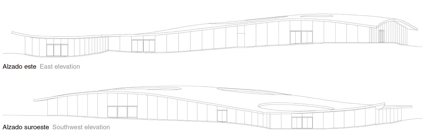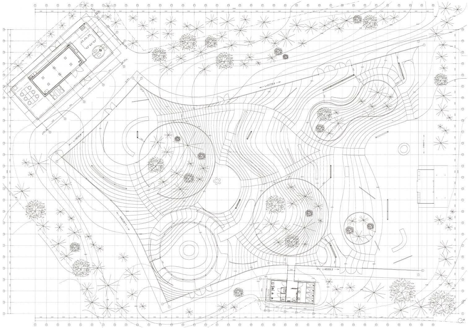 El edificio se resuelve mediante dos superficies paralelas que se adaptan a la orografía del terreno, siguiendo de manera suave y natural un desnivel de 3,5 metros entre linderos. Varios patios, cerrados con vidrio transparente de protección ultravioleta, introducen la luz y la vegetación en el interior. El museo es un único espacio que permite el recorrido fluido desde la recepción hasta las salas de exposición, y a través de la cafetería y el auditorio. El interior no está direccionado, siendo la pendiente del suelo, los patios y los paneles que sostienen las obras de arte los únicos elementos que guían el flujo de personas a través de un vasto espacio para la contemplación libre e íntima tanto de la obra como de la vegetación circundante.
