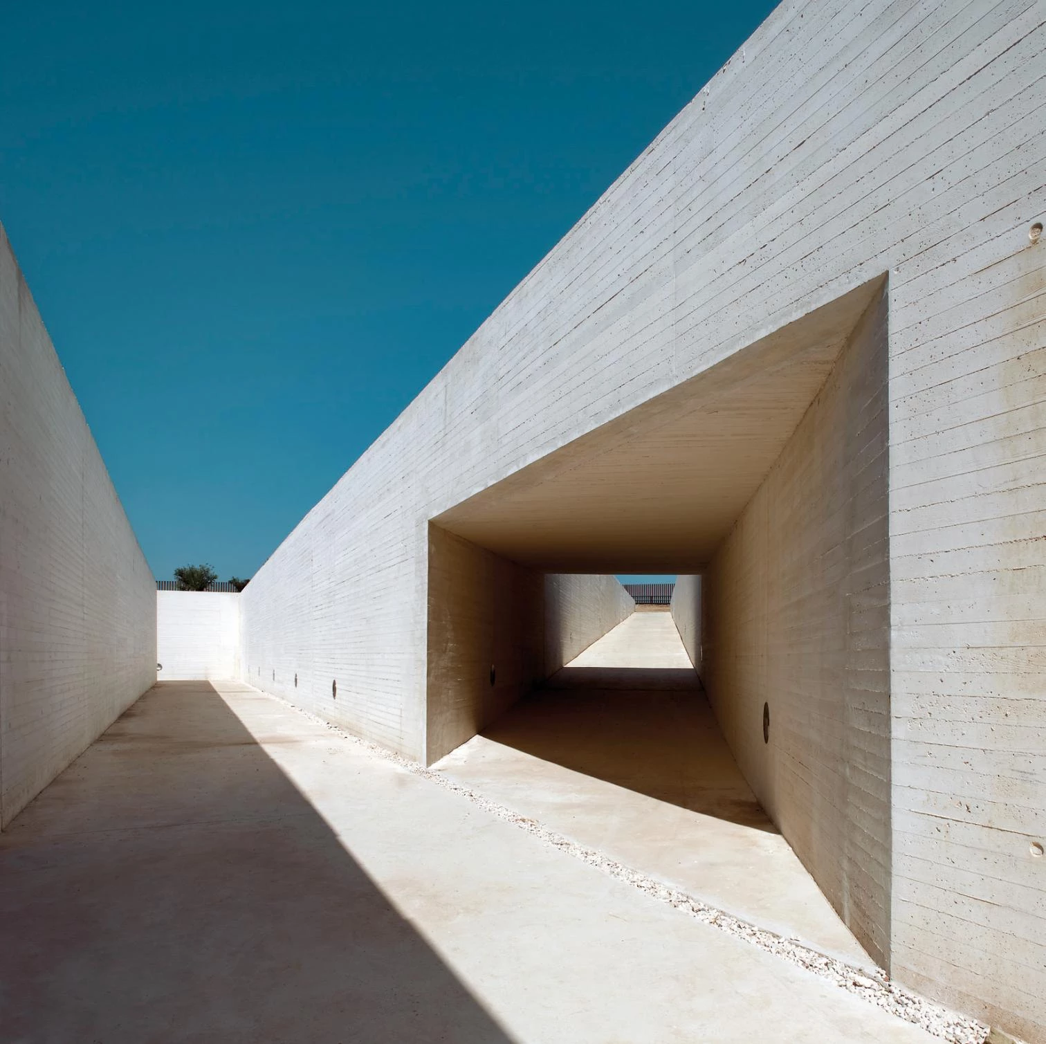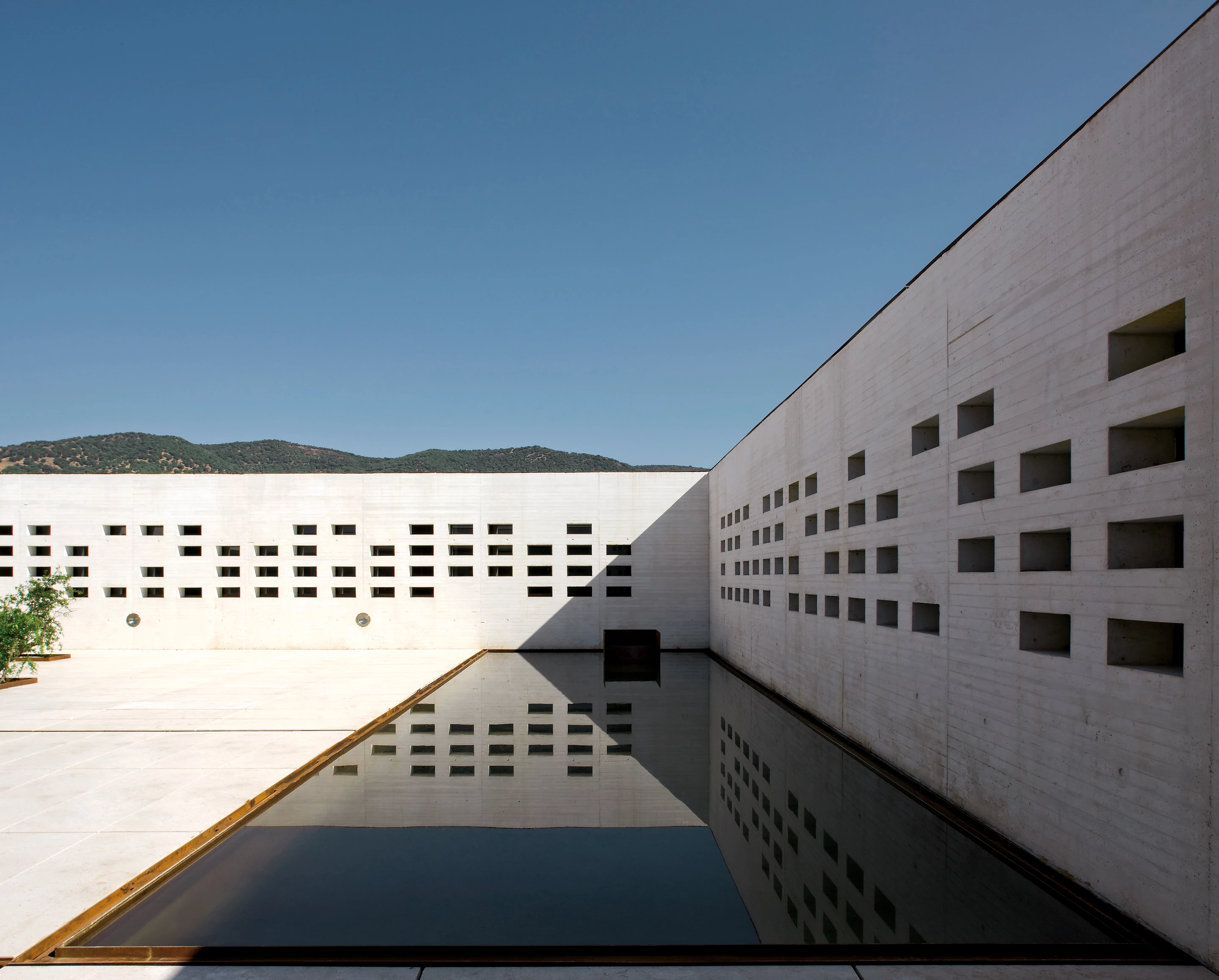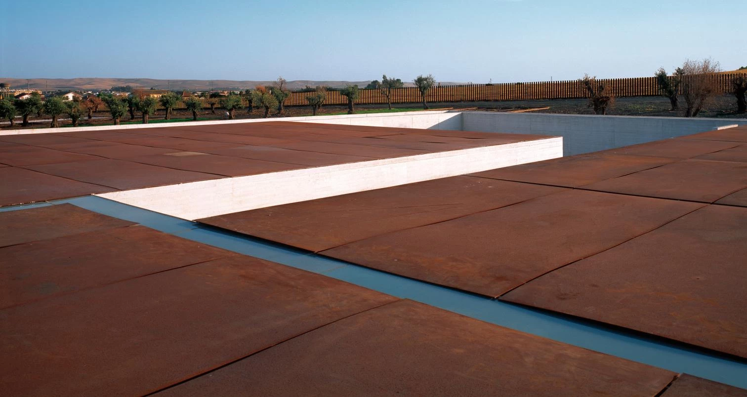 El nuevo museo establece casi imperceptiblemente un permanente diálogo con la arquitectura y el paisaje de la antigua medina árabe. La planta de doble cuadrado del museo se hace homotética con la de la ciudad, los jardines evocan la geometría abandonada de una excavación, los muros de hormigón y las cubiertas de acero cortén reflejan en el blanco y el rojo los colores con que originalmente estuvieron estucados los muros de la ciudad califal. La luz, la sombra, la textura, el material, abstraen la riqueza perceptiva que transmiten las ruinas arqueológicas. La arquitectura se torna así en la expresión espacial y formal de su soporte constructivo, en una vinculación tantas veces olvidada hoy en día. Cada vez que visitábamos la obra durante su construcción, los nuevos muros que íbamos levantando nos remitían a aquellos que fueron destruidos y ahora desenterraban los arqueólogos a pocos metros de distancia, en un proceso inverso —construcción, destrucción— que parecía contener toda la razón del proyecto. El museo de Madinat al-Zahra ha aparecido en el paisaje silenciosamente, como si hubiera sido encontrado bajo tierra, del mismo modo que a lo largo de los años continuará ocurriendo con los restos de la antigua ciudad de los califas omeyas.