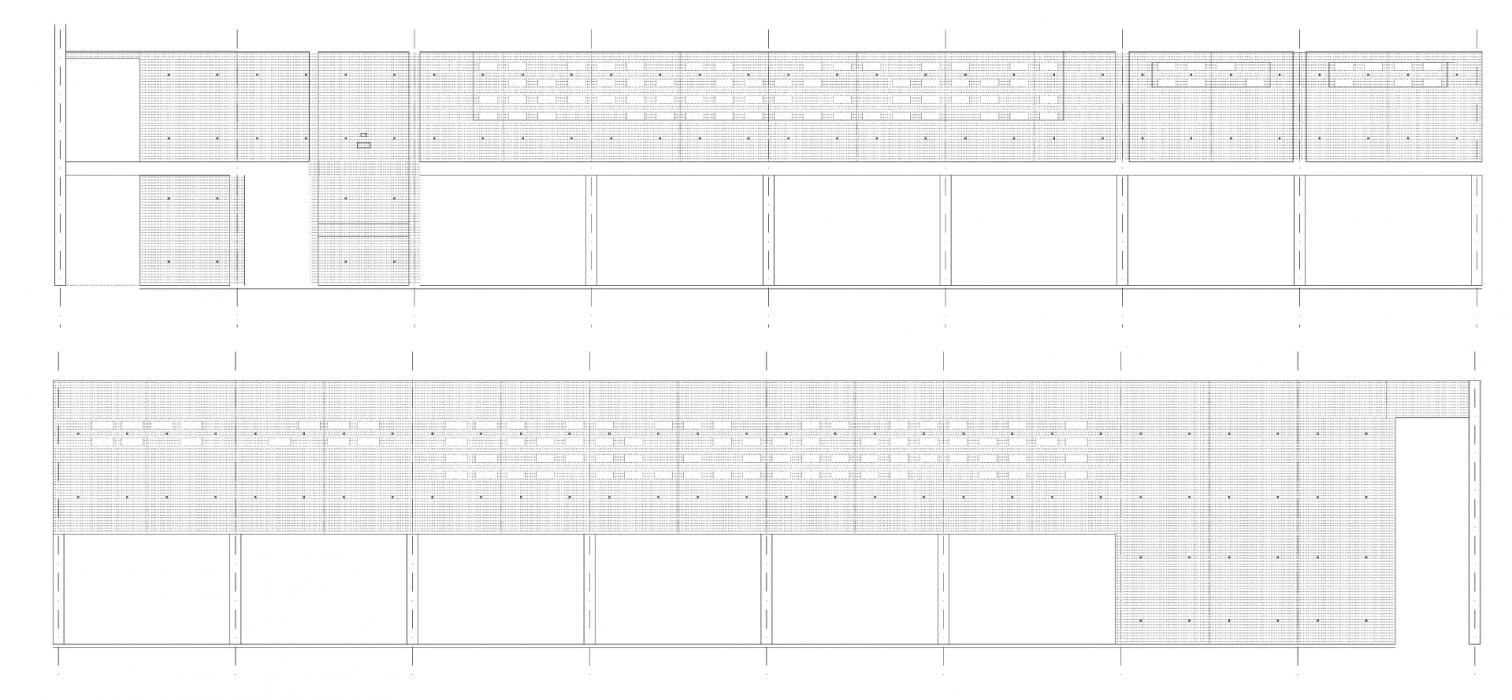 Los diferentes usos del programa están articulados en torno a una secuencia de patios y espacios cubiertos —llenos y vacíos—. Un cerramiento perimetral delimita el ámbito de la intervención.