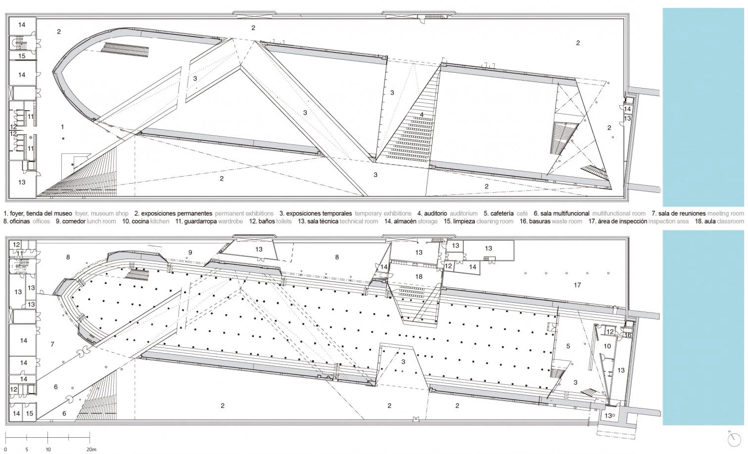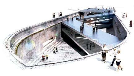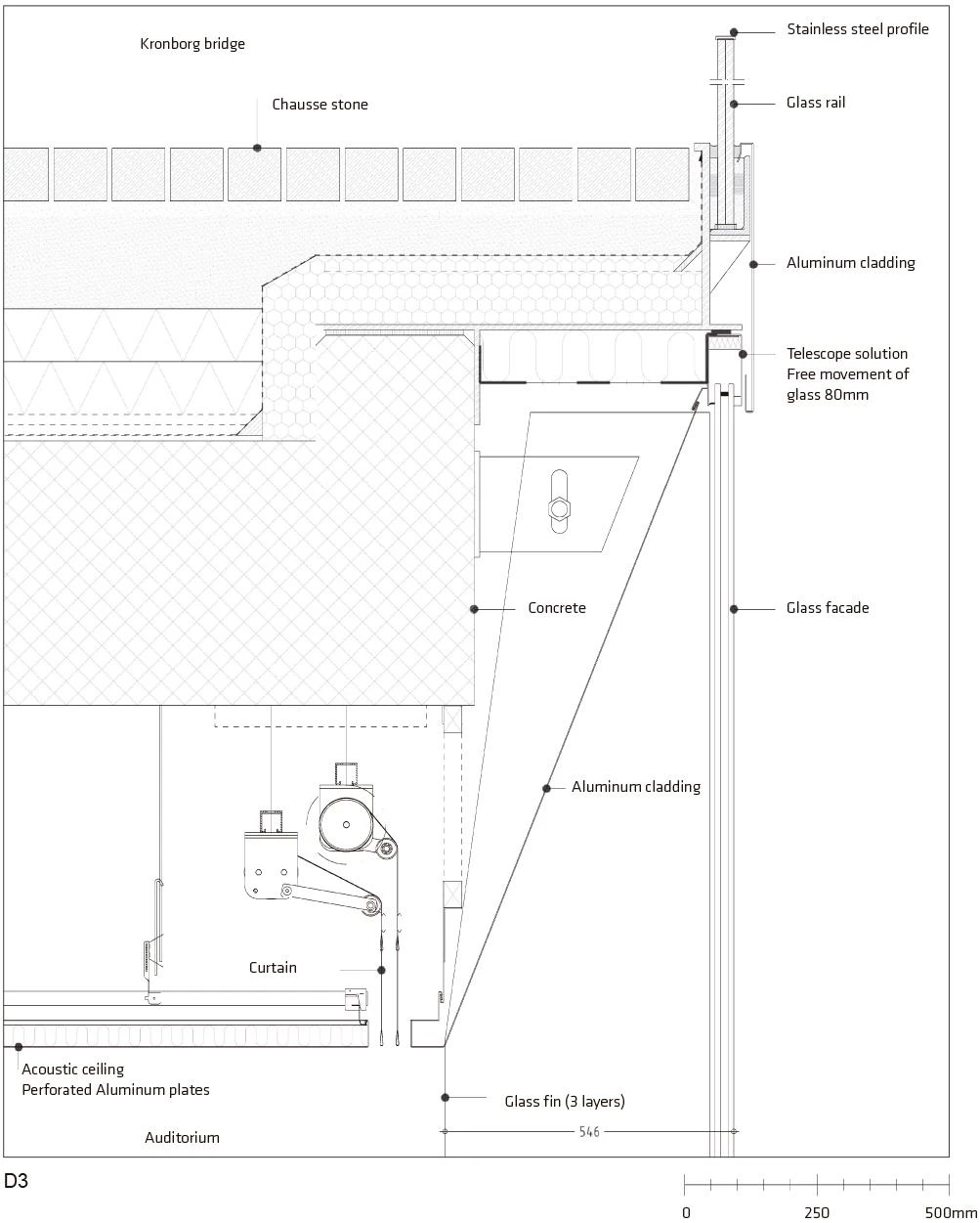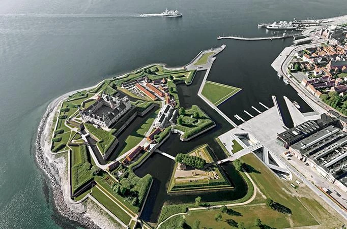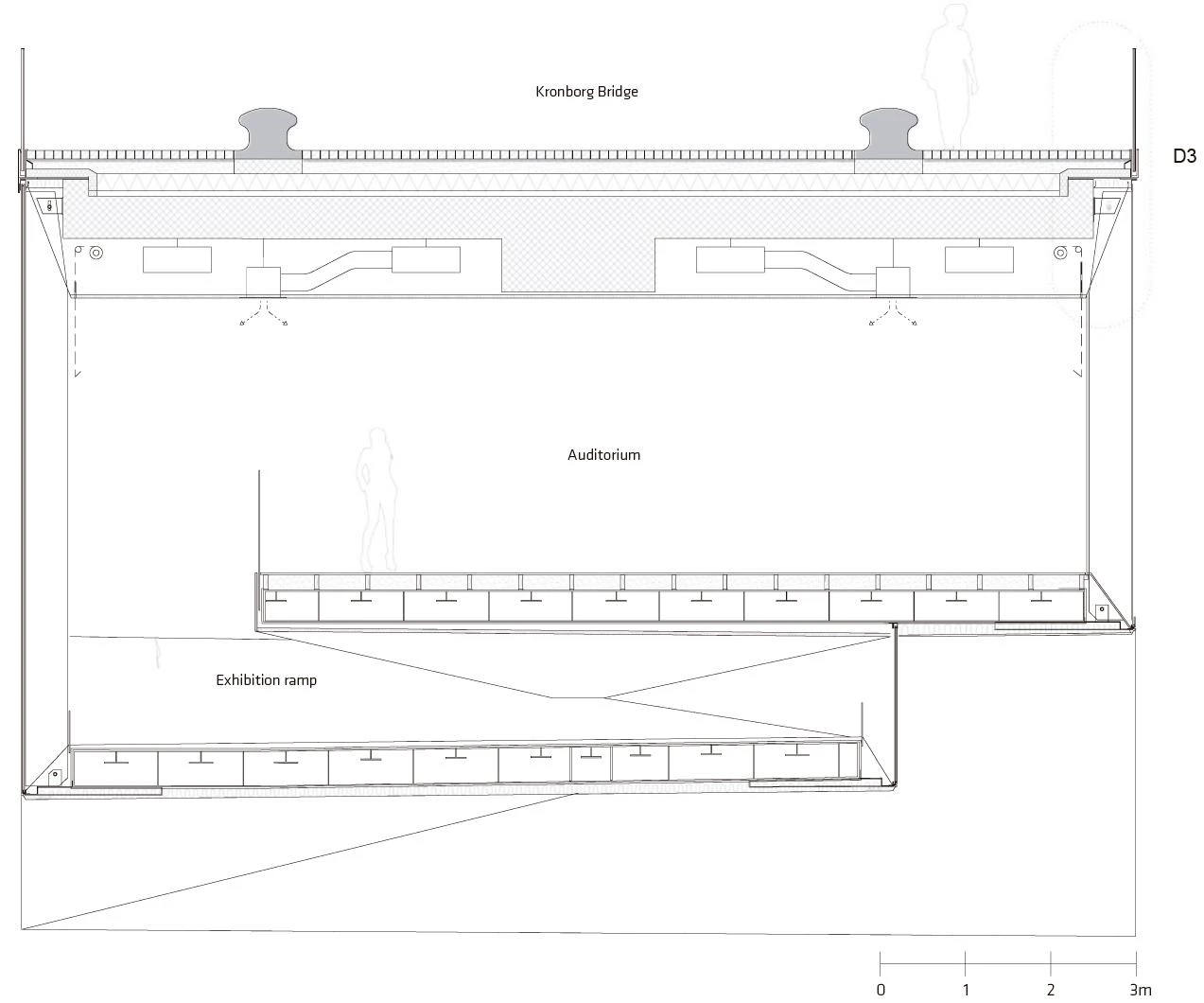Desde su fundación en 1915, el Museo Marítimo de Dinamarca estuvo ubicado en el castillo de Kronborg —una construcción de 1574 situada en una pequeña península y conocida por ser el escenario de Hamlet—, pero tuvo que abandonar este histórico emplazamiento cuando la UNESCO declaró el castillo Patrimonio de la Humanidad y las autoridades decidieron recrear los interiores originales del edificio. La nueva ubicación para el museo se halló muy cerca: un viejo dique seco a pocos metros del castillo. La propuesta ganadora del concurso convocado para cobijar la dotación en el nuevo emplazamiento fue la única en situarla en el perímetro del dique, y no en su interior como indicaban las bases, de manera que se conservase el cuenco vacío de la infraestructura para transformarlo en un espacio urbano hundido a ocho metros del nivel del mar. Se trataba de una operación que permitía mantener prácticamente intacto el entorno del castillo, al menos sobre rasante. La pertinencia de esta decisión se vio confirmada tras las primeros informes técnicos, que dictaminaron que, para mantenerse estables, los muros del dique seco dependían del empuje del agua, de tal modo que si se vaciase aquel, la presión del terreno obligaría a levantar un dique dentro de otro. Colocar el programa en torno al dique hizo posible, de este modo, que la construcción de un nuevo muro de contención no resultase redundante.