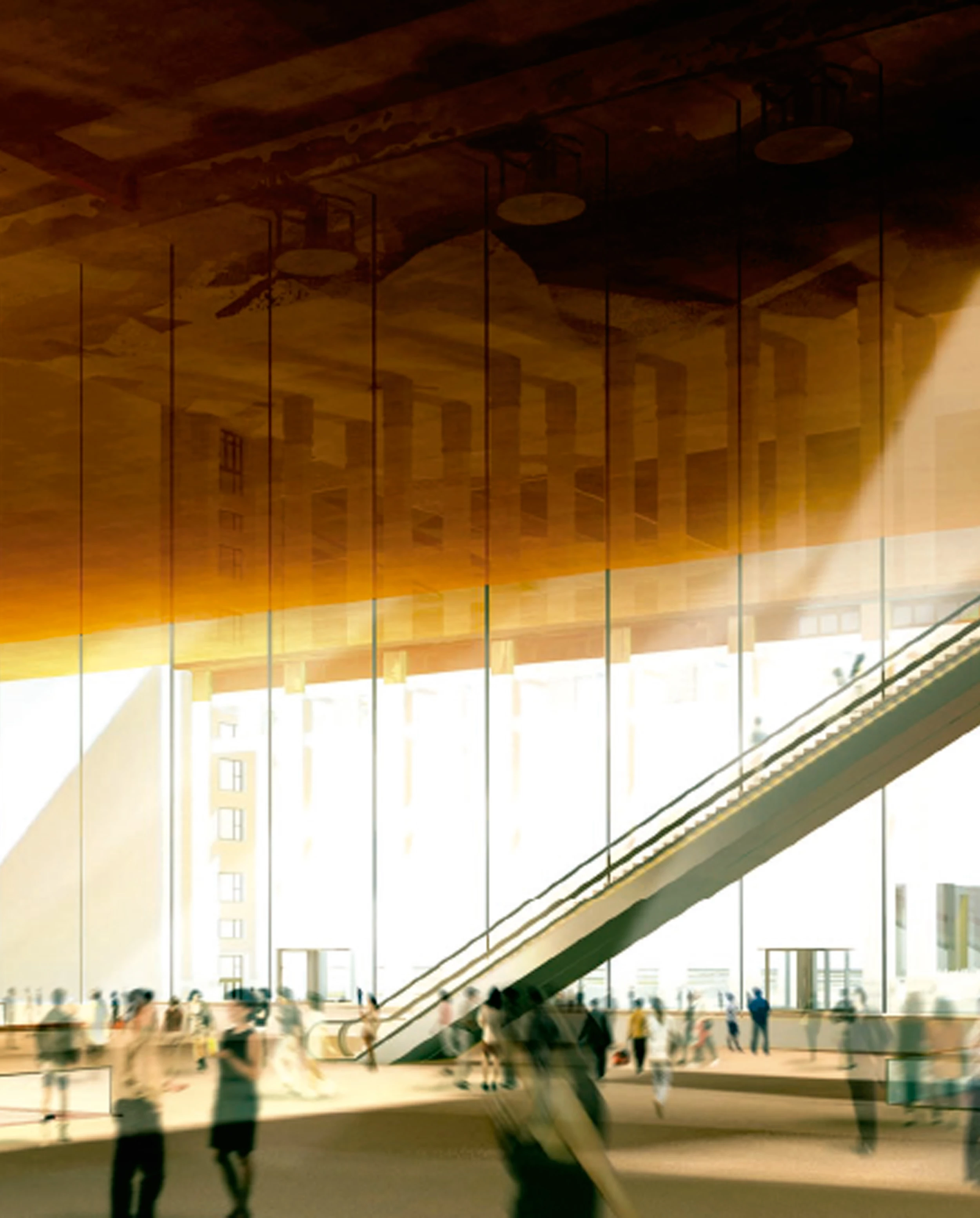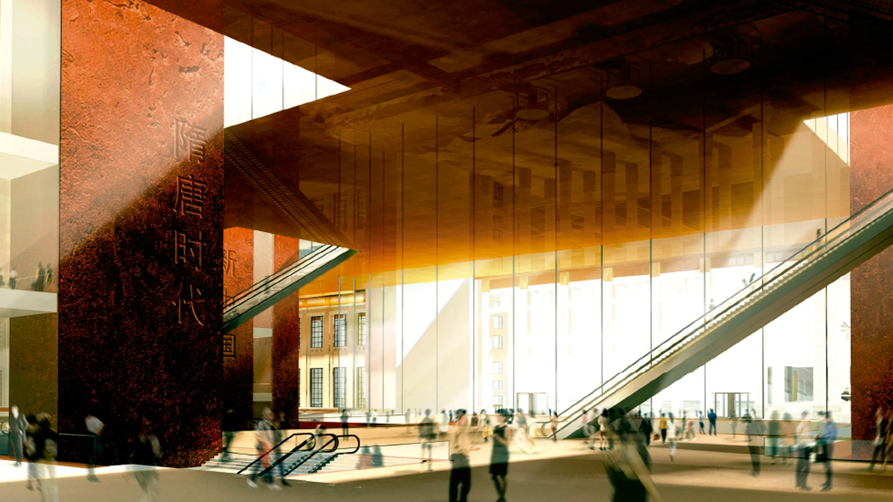 La tristemente famosa plaza de Tiananmen cuenta con dos edificios de gran volumen, enfrentados uno a otro. En el lado oeste se encuentra el conocido como Gran Salón Popular, mientras que, en el lado este, se aborda la rehabilitación de dos viejos museos (el de Historia China y el Revolucionario) que quedarán unificados en el futuro Museo Nacional de China. La intervención respeta el orden gigante de las columnas de la fachada existente y hace desaparecer un volumen central de entrada que, tras la unificación, carece de sentido. La cubierta, que coincide con el espacio central y que apenas sobresale del conjunto, constituye la imagen fundamental del edificio. Su perfil afilado, revestido de bronce como las estatuas que alberga, contará con un acabado dorado y brillante en la cara interior, que es visible desde la plaza, mientras que, en la cara exterior, el acabado será mate y más oscuro, para evitar cualquier confusión con los tejados dorados de la Ciudad Prohibida.