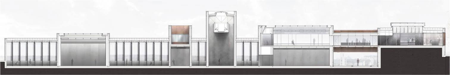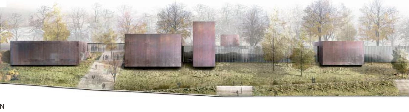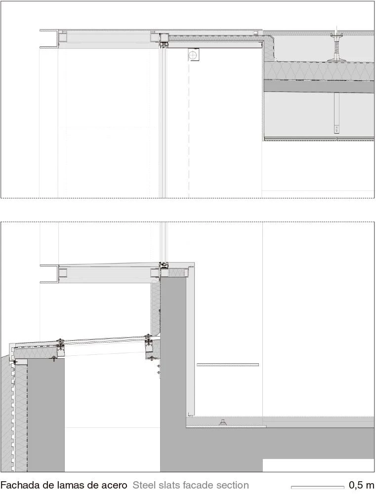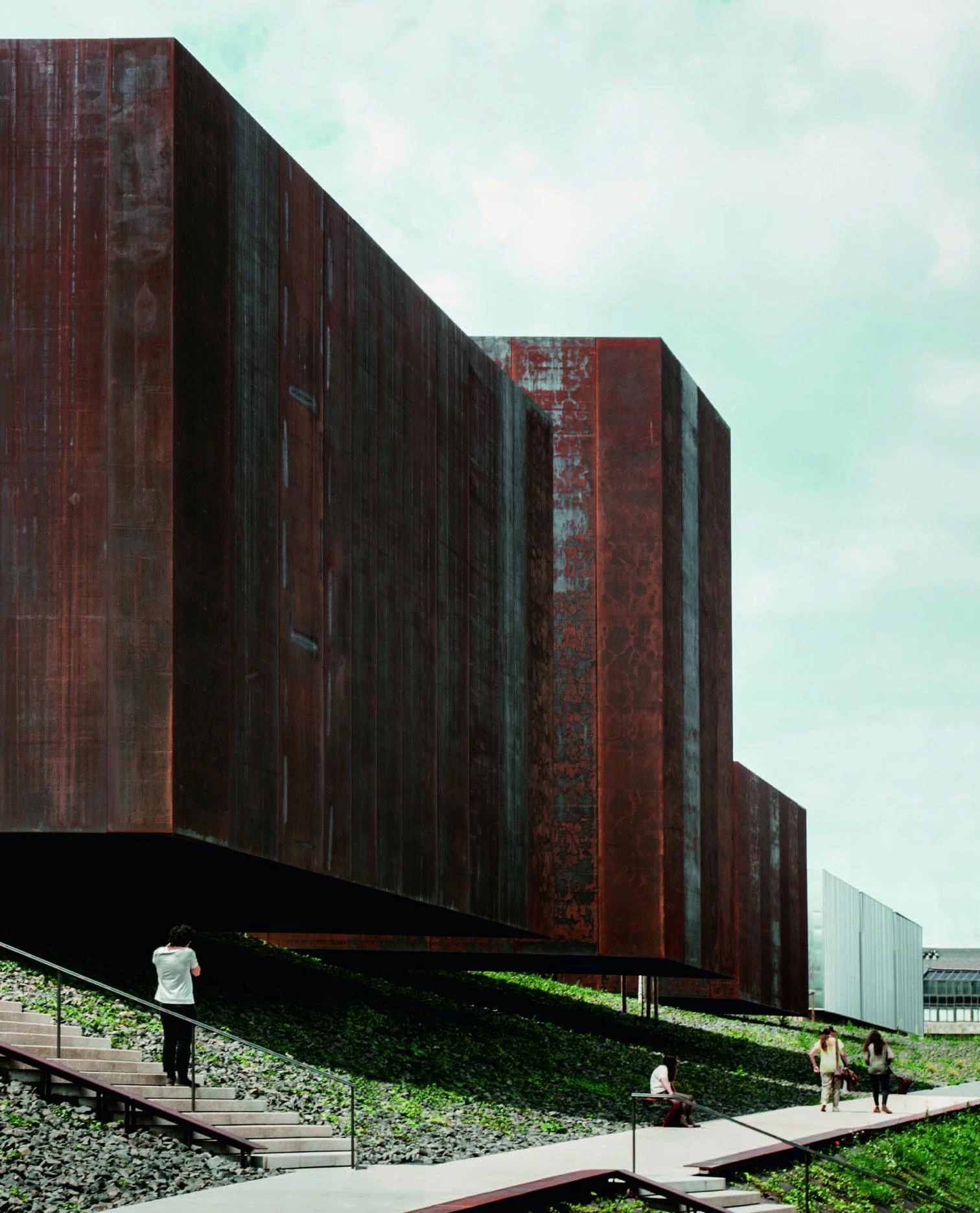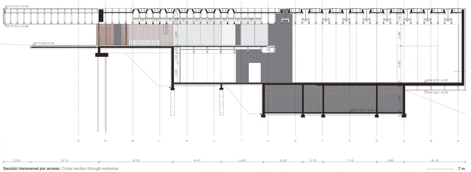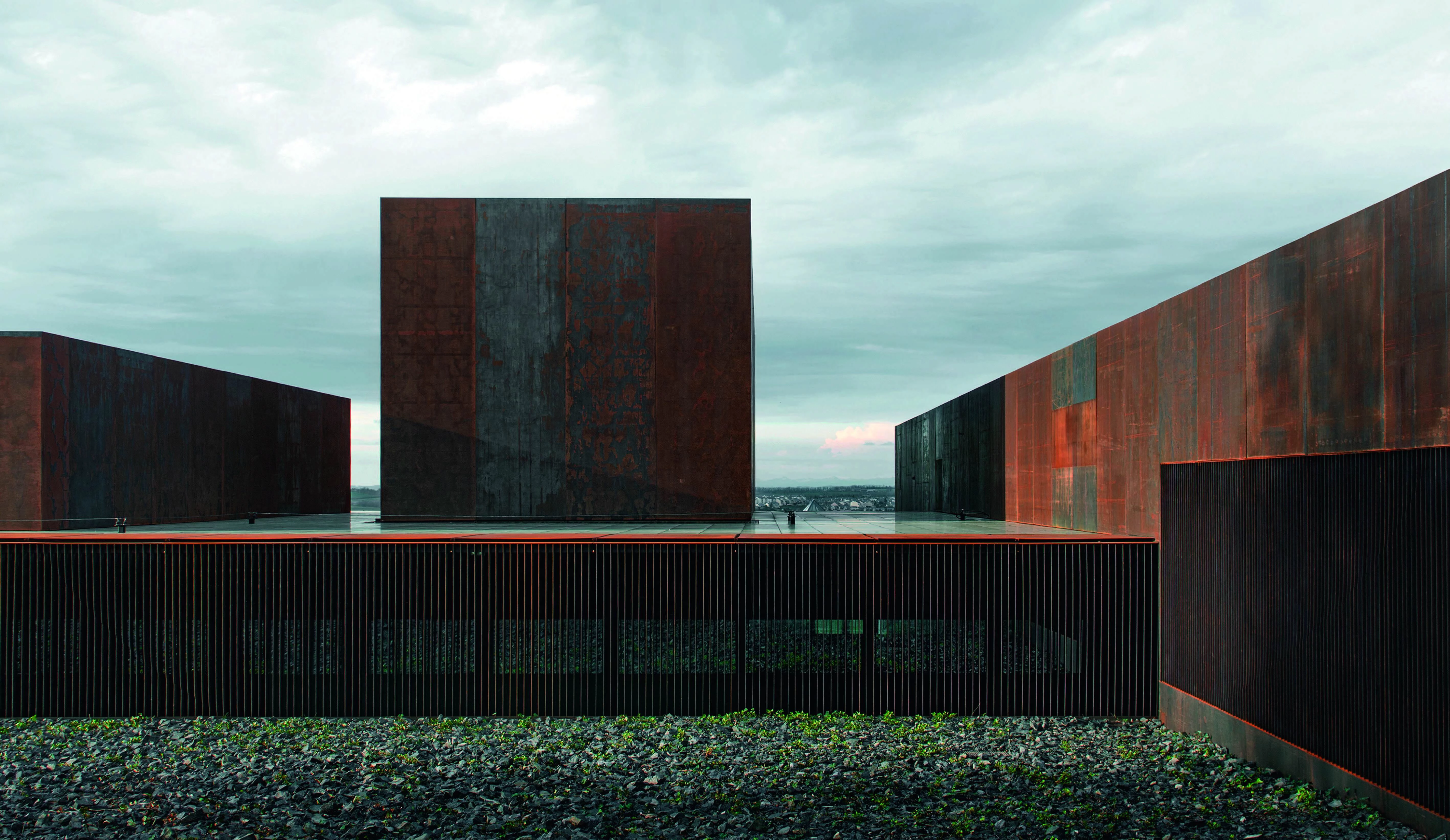 El museo consagrado a Pierre Soulages —artista nacido en 1919 y uno de los padres del informalismo en Francia— se levanta en un parque de su localidad natal, Rodez, muy cerca la gran catedral gótica que domina el conjunto urbano. Esta localización define el modo en que el museo se inserta en su entorno aprovechando el desnivel existente para segregar el edificio en dos partes: por un lado, un zócalo semienterrado en un talud; por el otro, un conjunto de paralelepípedos ciegos revestidos de acero cortén que se incrustan en la pendiente. Los 1.700 metros cuadrados de superficie expositiva se organizan a través de una pieza longitudinal de comunicaciones, dispuesta en paralelo a la calle de acceso, y que se cruza con varios volúmenes transversales para generar la imagen exterior del edificio: un conjunto de cajas de diferente altura, profundidad y separación, pero que sigue un orden rítmico. Con sus fachadas ciegas, las cajas se llenan con la luz misteriosa que se derrama cuidadosamente por los lucernarios.