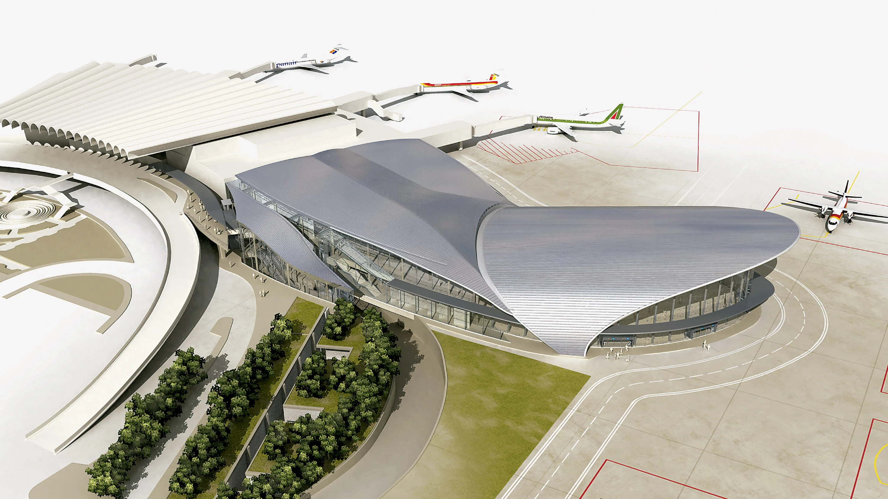 La nueva terminal para vuelos regionales se diseña como una prolongación del actual aeropuerto, ascendiendo y desmaterializándose a medida que se despega de él. El edificio, que integra una estación de metro, se divide en dos espacios protegidos por una singular cubierta realizada con una losa de hormigón de 30cm de espesor... [+]