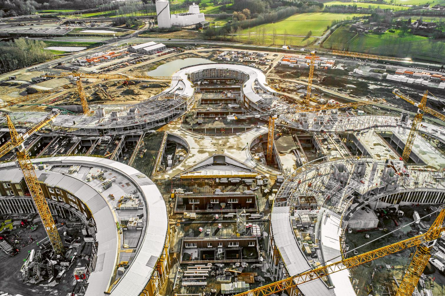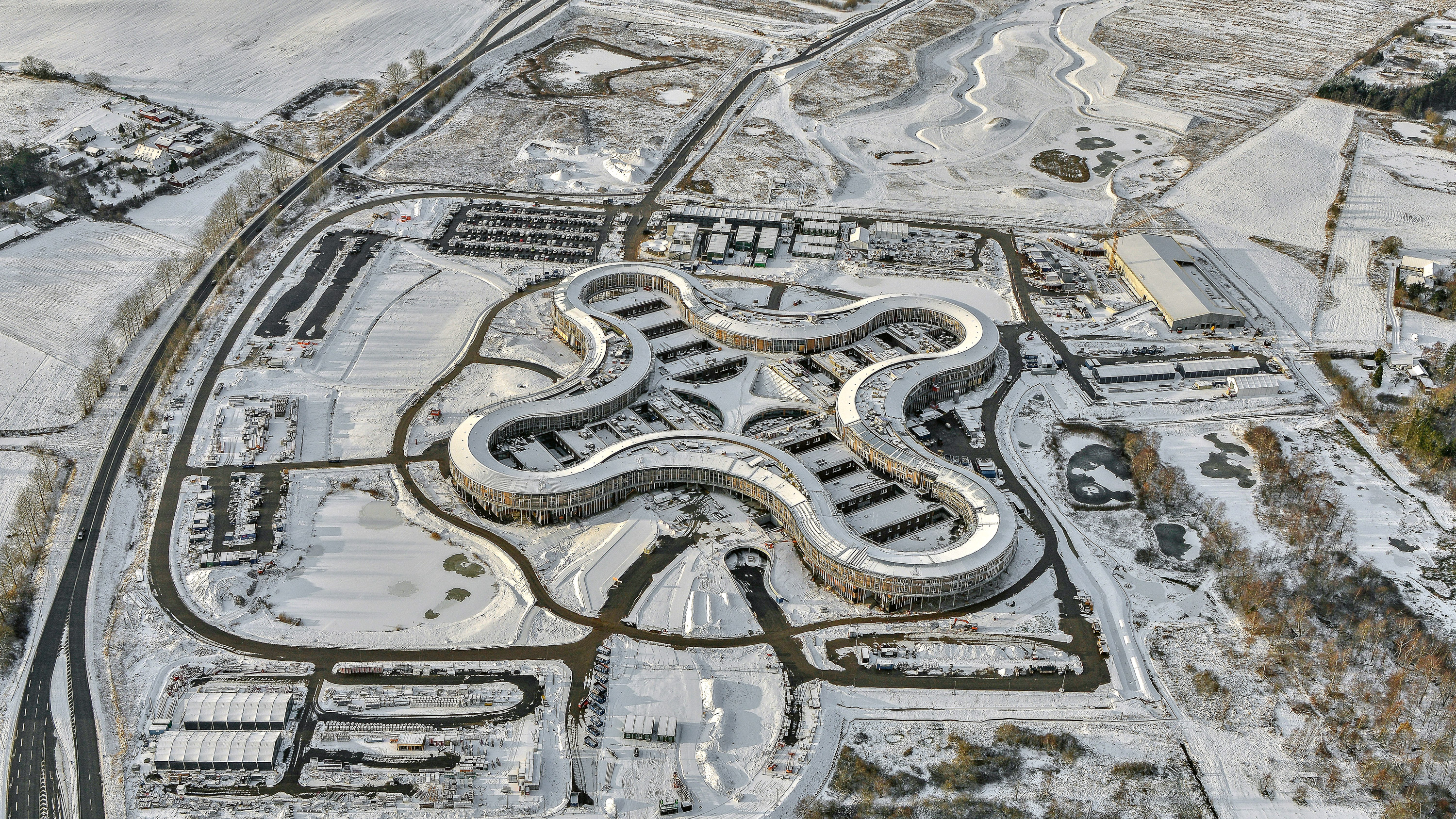 Ubicado en un entorno natural privilegiado de la ciudad de Hillerød, el nuevo Hospital de Selandia del Norte se integra en el paisaje gracias a su perfil bajo y a un diseño —una estructura horizontal y ondulada que favorece la interacción entre departamentos y agiliza los desplazamientos internos— que rompe con la tendencia de hospitales funcionalistas en altura. La particular planta en forma de cruz orgánica genera un gran jardín central interior, fluido y accesible, bajo el que se sitúa el vestíbulo principal, concebido como foco y eje de distribución del conjunto sanitario.