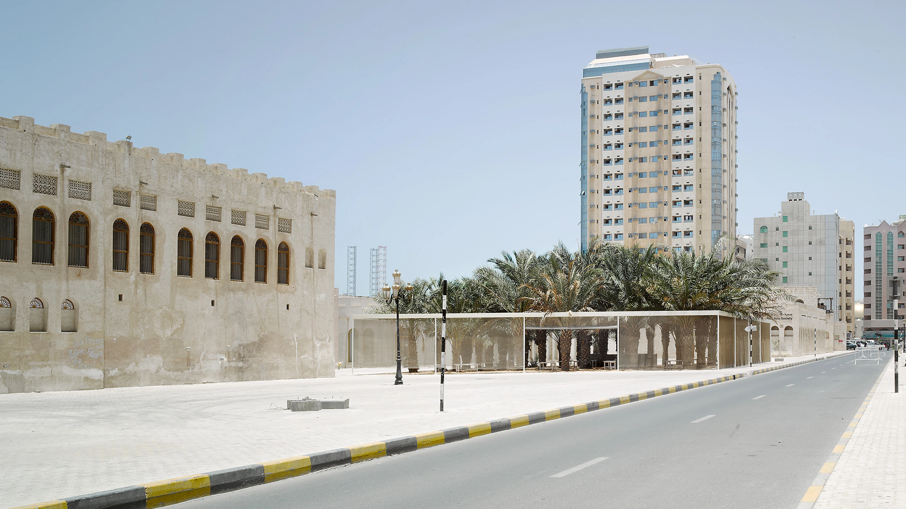 Este conjunto de jardines fue diseñado y construido para la 11a Bienal de Sarja, dirigida por la comisaria japonesa Yuko Hasegawa. En primer lugar, se desarrolló una estrategia para preservar el casco histórico de Sarja. Después, se llevaron a cabo una serie de pabellones que completaron el tejido urbano de la ciudad a través de su presencia volumétrica y que, al mismo tiempo, dotan al vecindario de pequeños oasis, espacios necesarios en un clima extremo como el del golfo Pérsico. Los tres pabellones constan de una sencilla estructura y malla de acero transparente que enmarcan unos jardines exuberantes y sombreados. Todos presentan diferentes grados de accesibilidad y crean un diálogo específico con su contexto urbano inmediato y los habitantes de la zona. Como pabellones livianos y permeables que muestran destellos del contenido de su jardín, estas nuevas estructuras son versiones contemporáneas de las adiciones tradicionales a la ciudad vieja, donde los perímetros de los patios se fueron agregando gradualmente al tejido urbano. Aplicando esta lógica, los nuevos recintos incorporan un conjunto de espacios verdes abiertos al público de vuelta al laberíntico tejido de la ciudad vieja, en el que el espacio público se ha vuelto casi inexistente...
