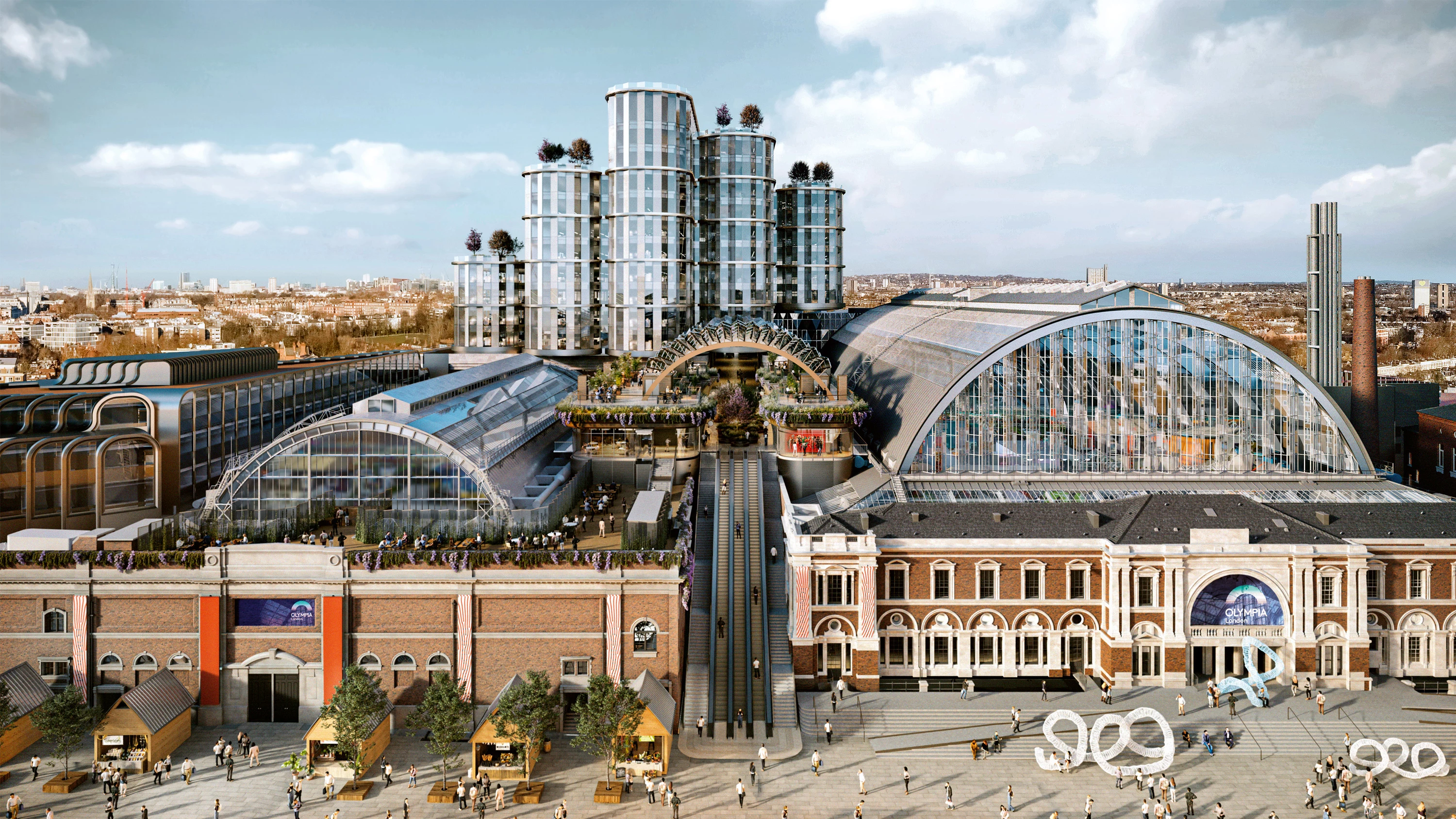 El proyecto consiste en la transformación de un centro de exposiciones —construido hace 130 años bajo el nombre de National Agricultural Hall y ubicado en una parcela de casi seis hectáreas en Kensington (Londres)— en un espacio destinado al arte, el entretenimiento y el comercio que, sin dejar de adaptarse a los tiempos, conservará su condición originaria de ‘Palacio para el pueblo’.
