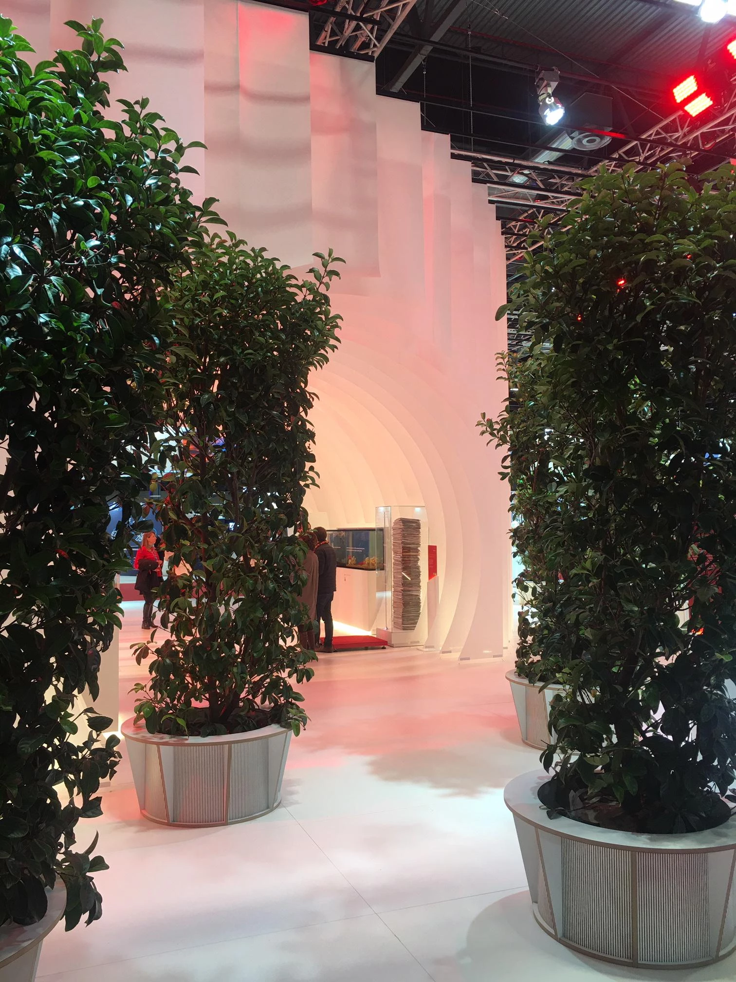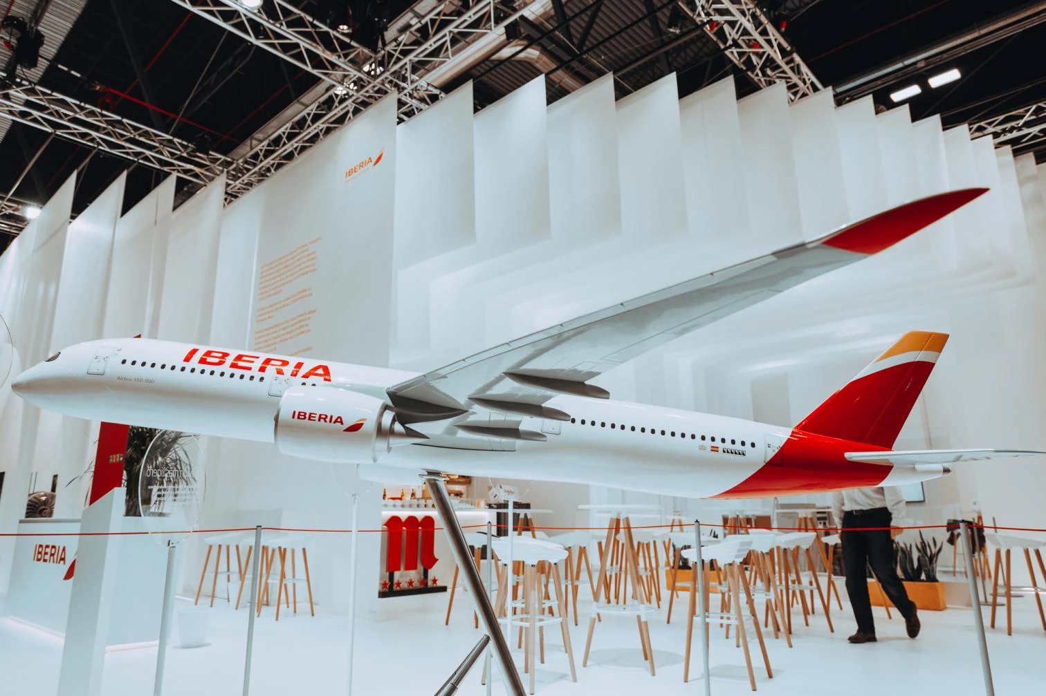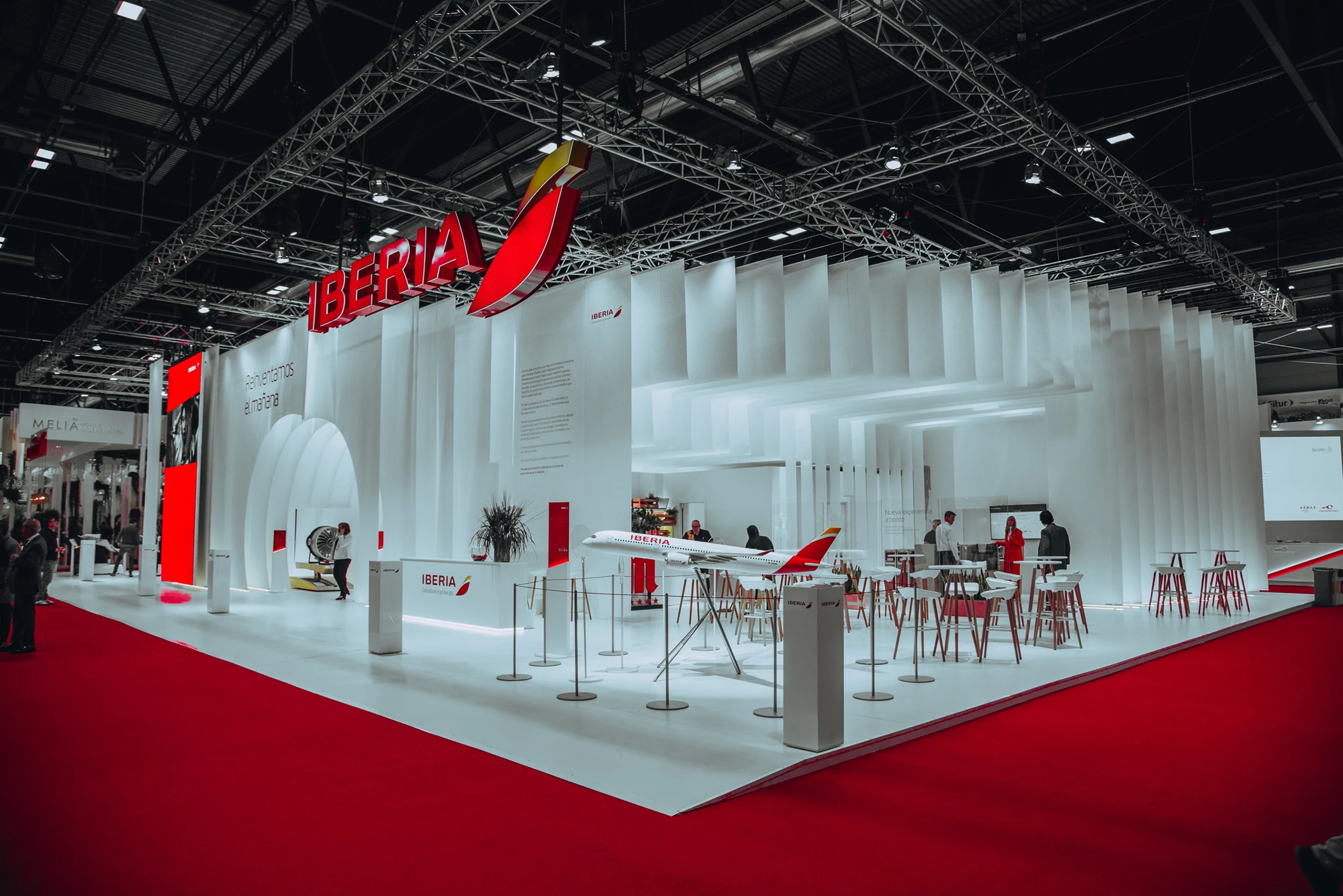 Obra del estudio fundado por Jesús San Vicente, el stand de la aerolínea Iberiarecibió uno de los premios de la última edición de la Feria Internacional de Turismo (FITUR), celebrada en Madrid, en la categoría Empresas. El concepto del diseño está basado en la descomposición del logotipo de la compañía en láminas suspendidas de papel de origen ecológico (1.500 metros cuadrados), posteriormente reutilizado y reciclado. El volumen está perforado por un túnel, que simboliza la entrada en el interior de un avión. El movimiento de luces con diferentes colores genera diferentes ambientes.