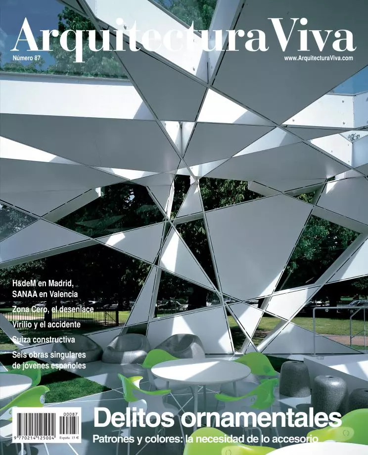 El proyecto 2002, desarrollado en colaboración con el ingeniero Cecil Balmond, de la firma Arup, partió de la idea de crear una estructura sin soportes y que no estuviera basada en una malla ortogonal. Entre todas las posibilidades se optó por construir una caja de base cuadrada que se sustenta mediante un armazón de piezas planas de acero entrecruzadas, donde todos los elementos funcionan de manera interdependiente formando un complejo sistema cuya combinación, aparentemente aleatoria, está basada en cálculos matemáticos muy precisos. La superficie exterior se reviste alternando paneles de aluminio y de vidrio, que siguen las líneas marcadas por las piezas estructurales de acero. De esta manera se genera un patrón geométrico formado por multitud de piezas de diferentes formas y tamaños que, sin dejar a la vista la estructura, tampoco la oculta, dando lugar a un nuevo tipo de relación entre los elementos del edificio que resulta de la fusión de estructura, superficie exterior y ornamento. En el interior, las líneas estructurales se mantienen en el suelo, donde se han plantado algunas piezas de césped siguiendo el mismo patrón. El resultado es una caja blanca y rasgada que se posa sobre la hierba tan levemente como un recortable de papel... [+]