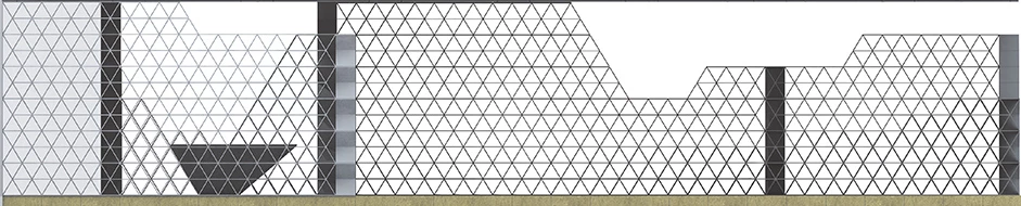La pietra serena se conoce sobre todo como la piedra del renacimiento florentino, la piedra de Brunelleschi, de Miguel Ángel y de Vasari. Basta recordar la iglesia del Santo Spirito o el palacio Strozzi en Florencia, aunque quizá el bajo relieve de La Anunciación de Donatello, conservada en la iglesia Santa Croce, sea el ejemplo artístico más notorio de las posibilidades plásticas que ofrece la pietra serena. El pabellón Card Castle se construye exclusivamente con esta piedra arenisca con la intención de mostrar y expresar su belleza y explorar sus nuevas aplicaciones y posibilidades. Para ello, el proyecto parte de una forma geométrica pura, el triángulo equilátero, elegido por su gran estabilidad. Tres piezas rectangulares de las mismas dimensiones de diez milímetros de espesor se ensamblan y forman las caras de la unidad triangular base de la estructura del pabellón. La agregación y repetición de este pequeño módulo permite construir grandes pantallas con múltiples posibilidades de diseño y crecimiento. Esta forma de diseñar una estructura a partir de un módulo ‘hueco’ genera superficies ligeras y permeables, que transmiten la idea de transparencia. Además, la densidad, el color homogéneo y la textura neutra carcaterísticos de la pietra serena confieren una imagen abstracta al pabellón.