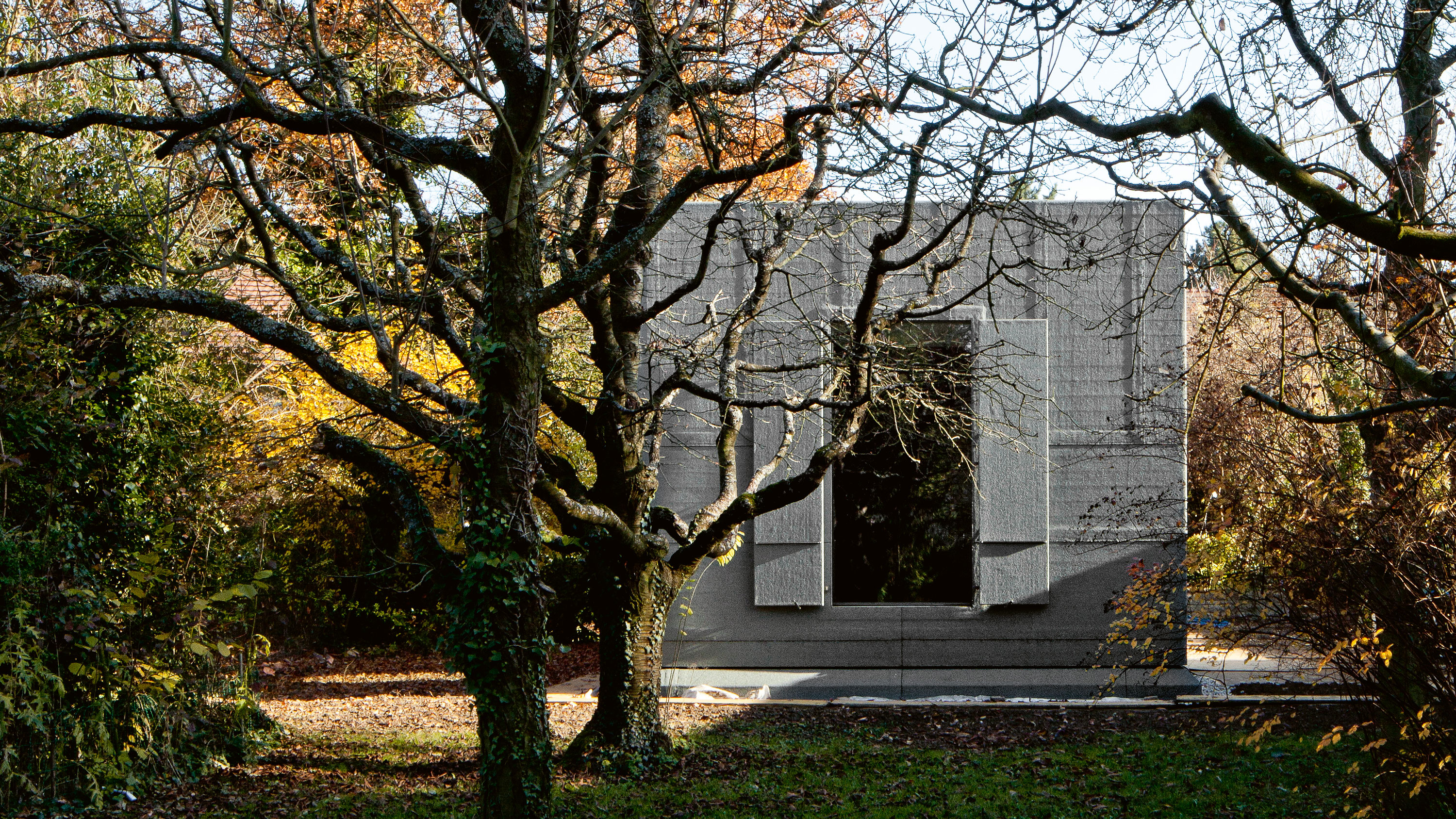 En el extenso jardín de una villa suburbana de principios del siglo XX, una pequeña construcción de madera reformula el tipo tradicional de los cobertizos traseros. De este modo, se compone con los habituales materiales toscos y económicos: una sencilla estructura de elementos prefabricados de madera apoyados sobre una losa de hormigón, y una fachada impermeabilizada con láminas bituminosas, que le confieren un aspecto inacabado. Pero esta austeridad material contrasta con un tratamiento ornamental que remite a las composiciones clásicas de los palazzi y que se culmina con unas grandes contraventanas que, al cerrarse, transforman el volumen en una abstracta pieza de fuerte carácter tectónico. Esta inversión de las convenciones continúa en el interior, donde una disposición en enfilade recuerda a las residencias burguesas, mientras que las limitaciones de tamaño obliga a una ingeniosa solución que aglutina todos los núcleos húmedos en el centro para ocultarlos cuando se abren las puertas de las estancias principales. Los acabados de las estancias también se alejan de la sencillez habitual de un galpón, con un suntuoso color verde en las paredes, un suelo de hormigón pulido claro y unas amplias ventanas que introducen el jardín circundante en el peculiar espacio del pabellón...[+]