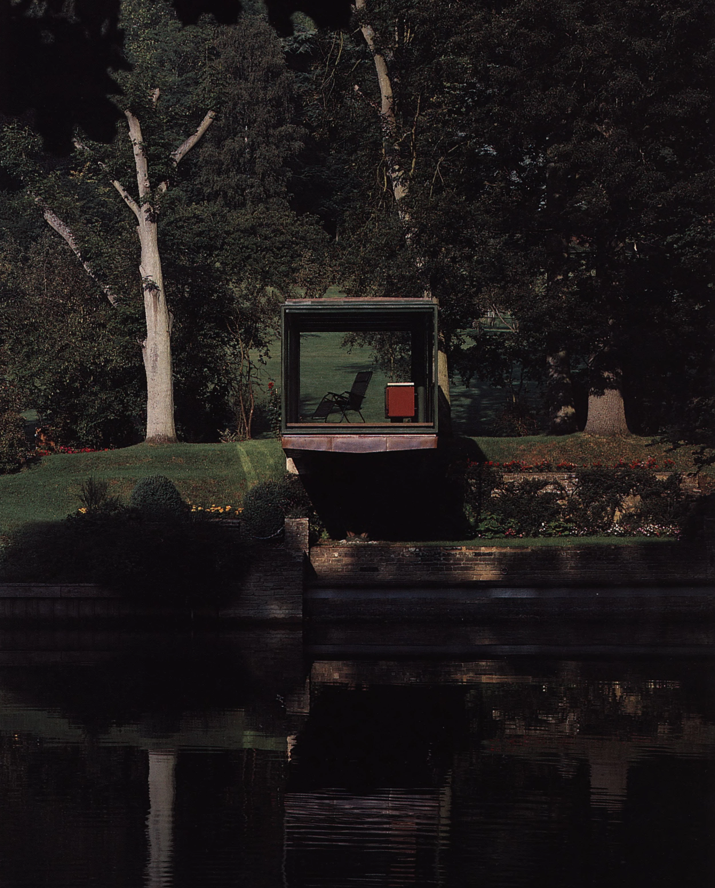 La ribera del Támesis ha conseguido conservar a lo largo de los años muchos de sus atractivos originales. El trayecto por los condados de Berkshire y Oxfordshire proporciona algunas de las mejores vistas del paisaje de la zona. Con este entorno privilegiado resulta lógica la petición de los clientes, una pareja propietaria de una extensa finca en Streatley con un cui- dado jardín que se extiende 250 metros por la orilla del río: se solicitaba un pequeño edificio de contemplación, cercano a la casa, donde relajarse en soledad o con sus invitados.
