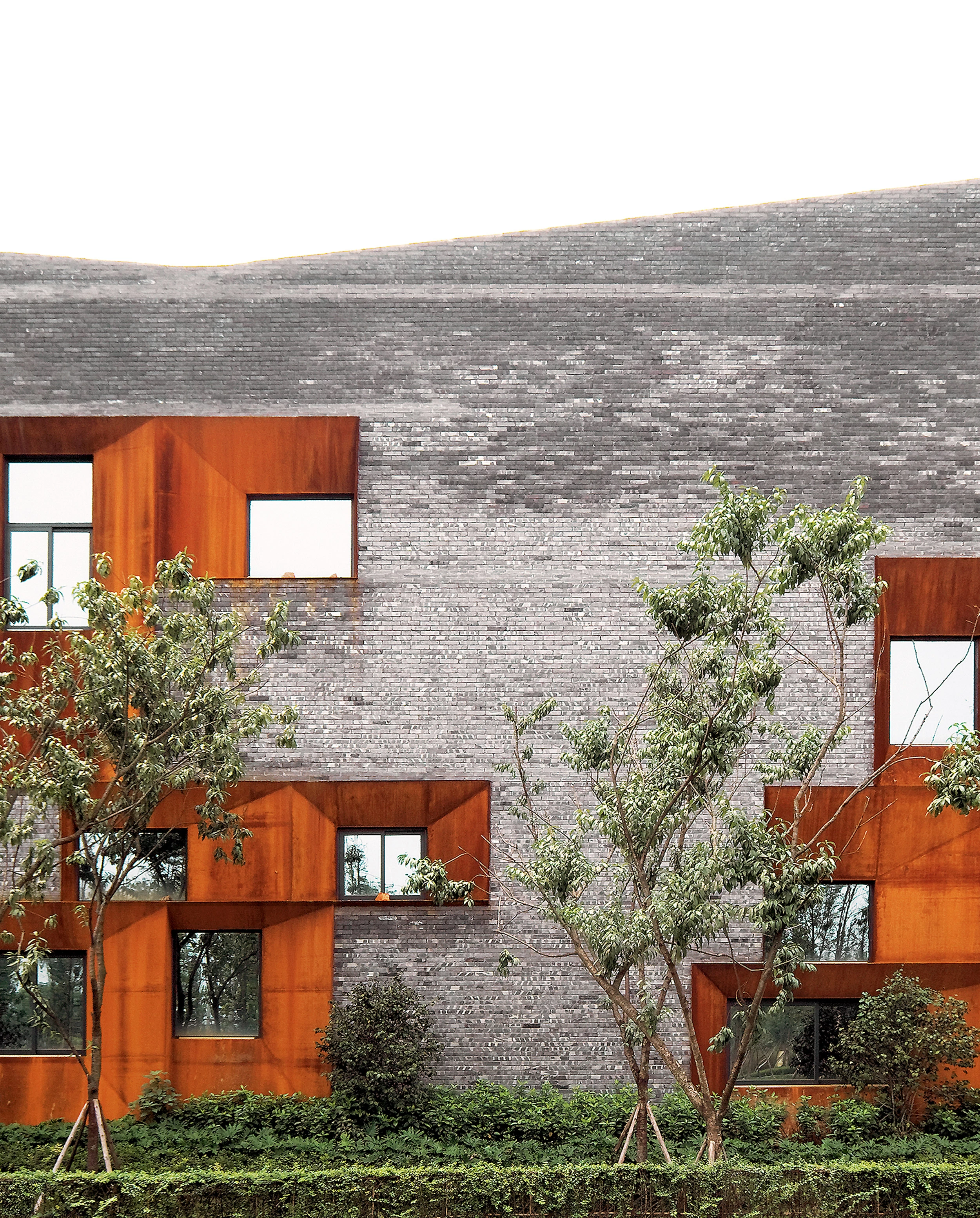 Situado en el Parque Cultural de Chengdú, este pabellón reinterpreta el tipo tradicional chino de las construcciones en torno a patios. Además de por dar cuenta del genius loci, la adopción de este esquema se justifica por varias razones. En primer lugar, por el programa, pues se exigía disponer de varias salas de exposiciones, de diferentes tamaños y concatenadas entre sí formando un recorrido; en segundo lugar, por la forma irregular del solar, que pedía una trama ordenada, pero lo suficientemente flexible para adaptarse al perímetro; finalmente, por la necesidad de crear una adecuada atmósfera interior.