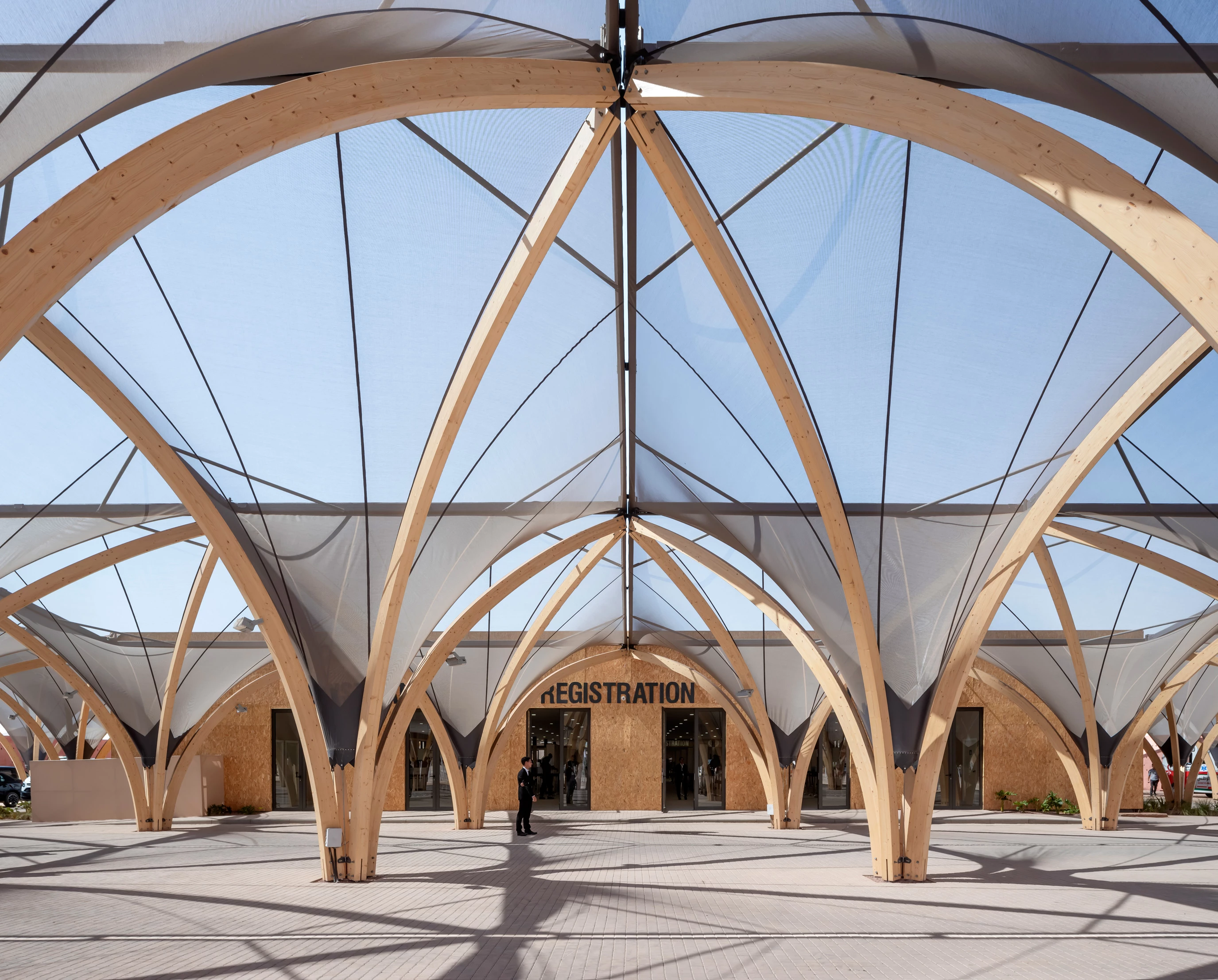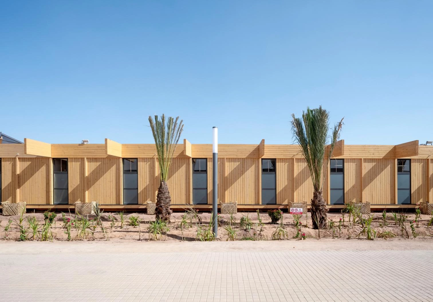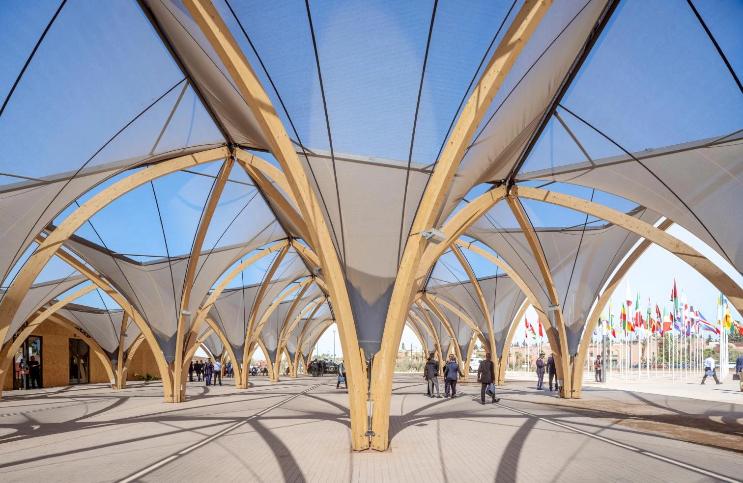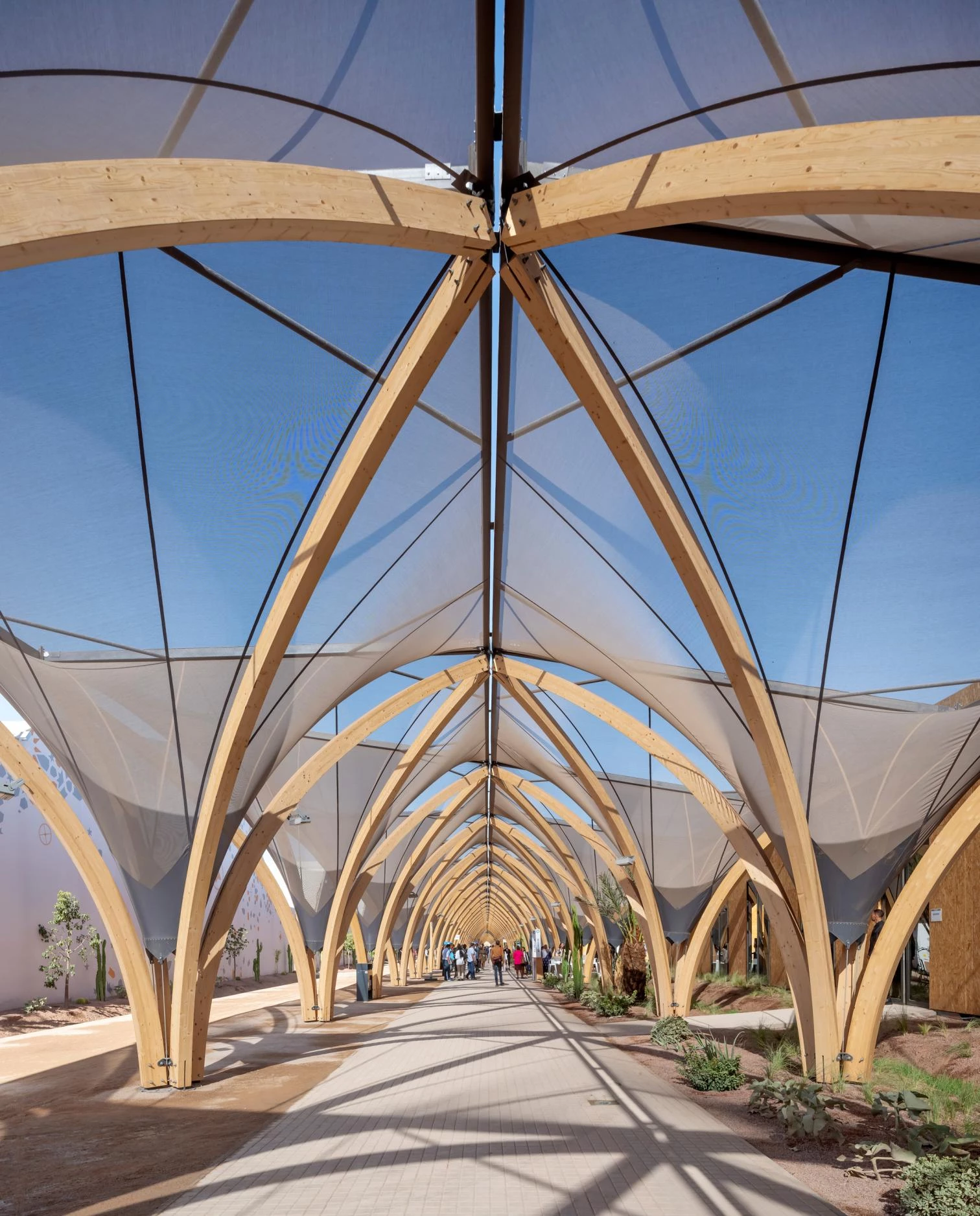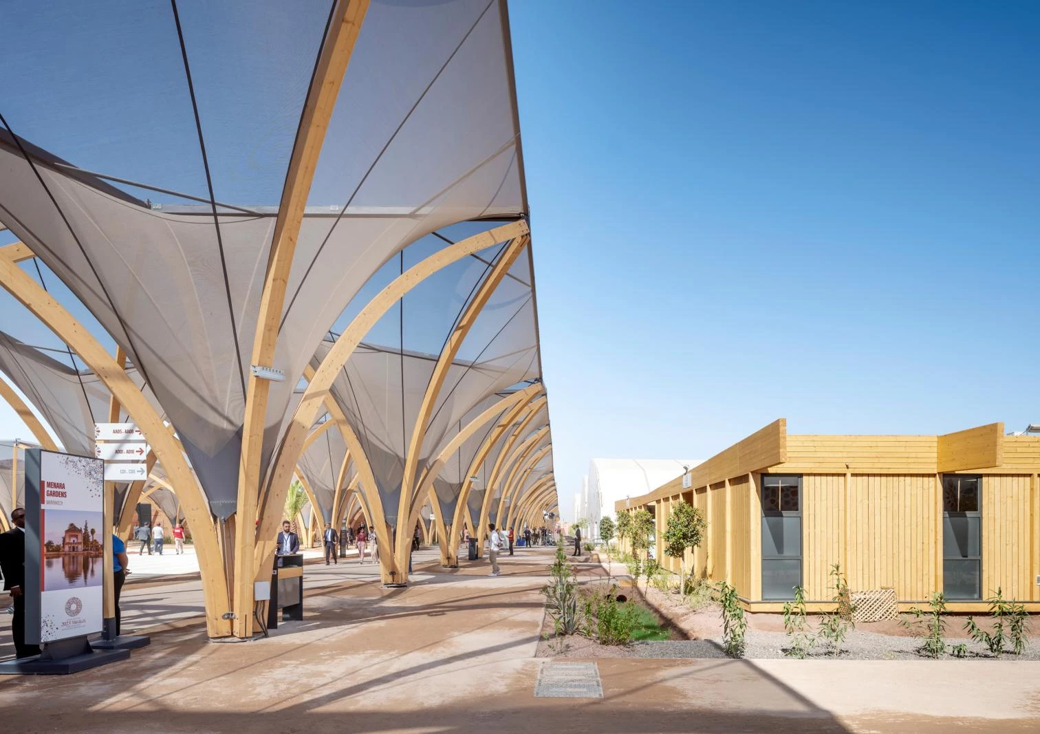 Destinado a acoger a 14.000 personas durante una semana, el diseño reflexiona a su vez sobre las posibilidades de planificación urbana temporal. Las 48 construcciones de madera del recinto se reutilizarán después del evento, siendo readaptadas como edificios educativos en Marruecos.
