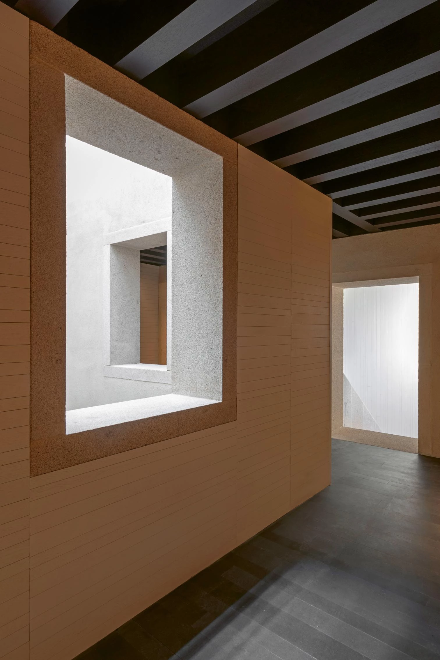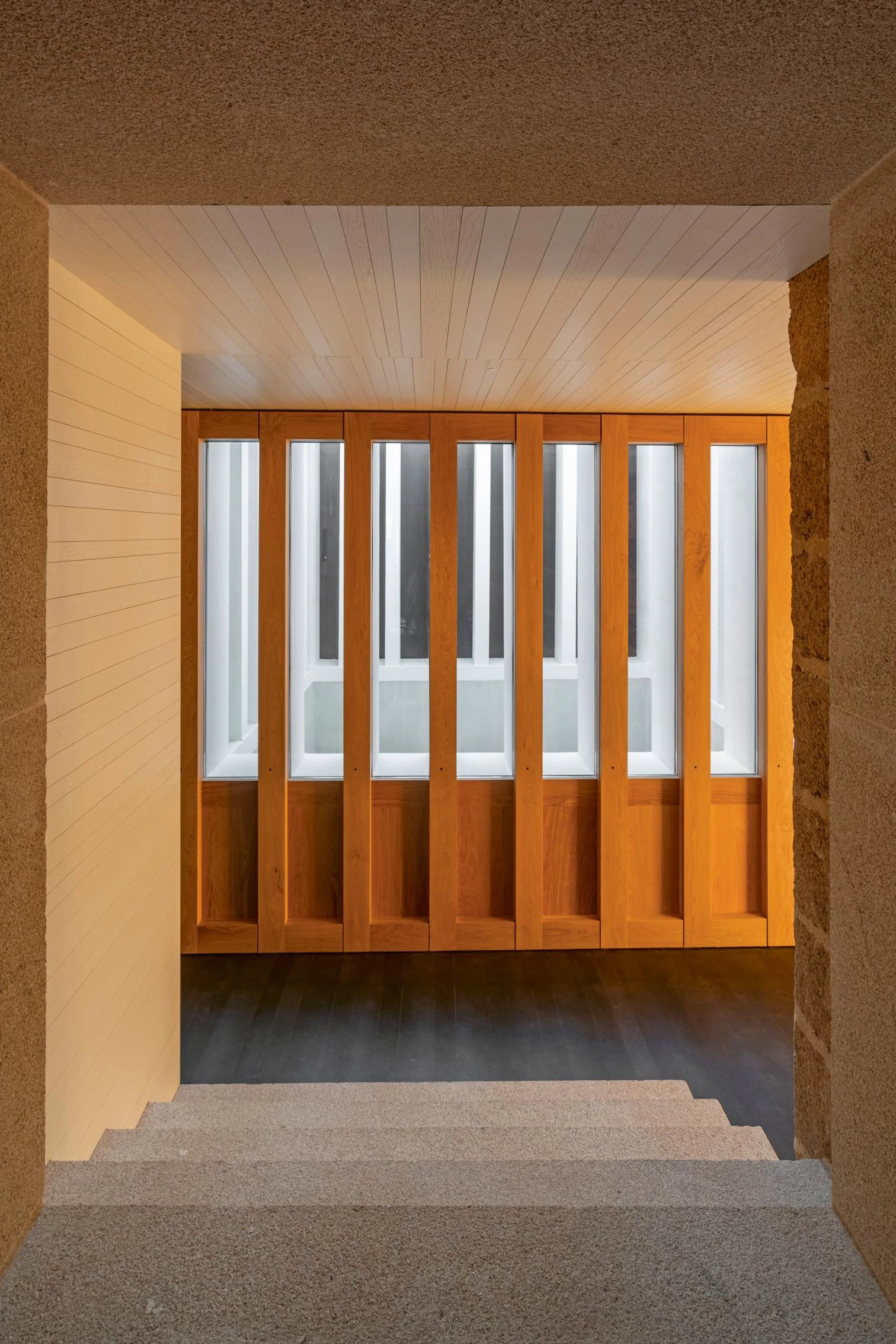 La intervención está basada en el respeto a la estructura original del edificio histórico, con la incorporación de una arquitectura de carácter contemporáneo que, como si se tratara de una vestimenta interior, va cubriendo las superficies existentes mediante bóvedas encamonadas de madera en la planta baja, y artesonados, también de madera, en las dos plantas superiores.