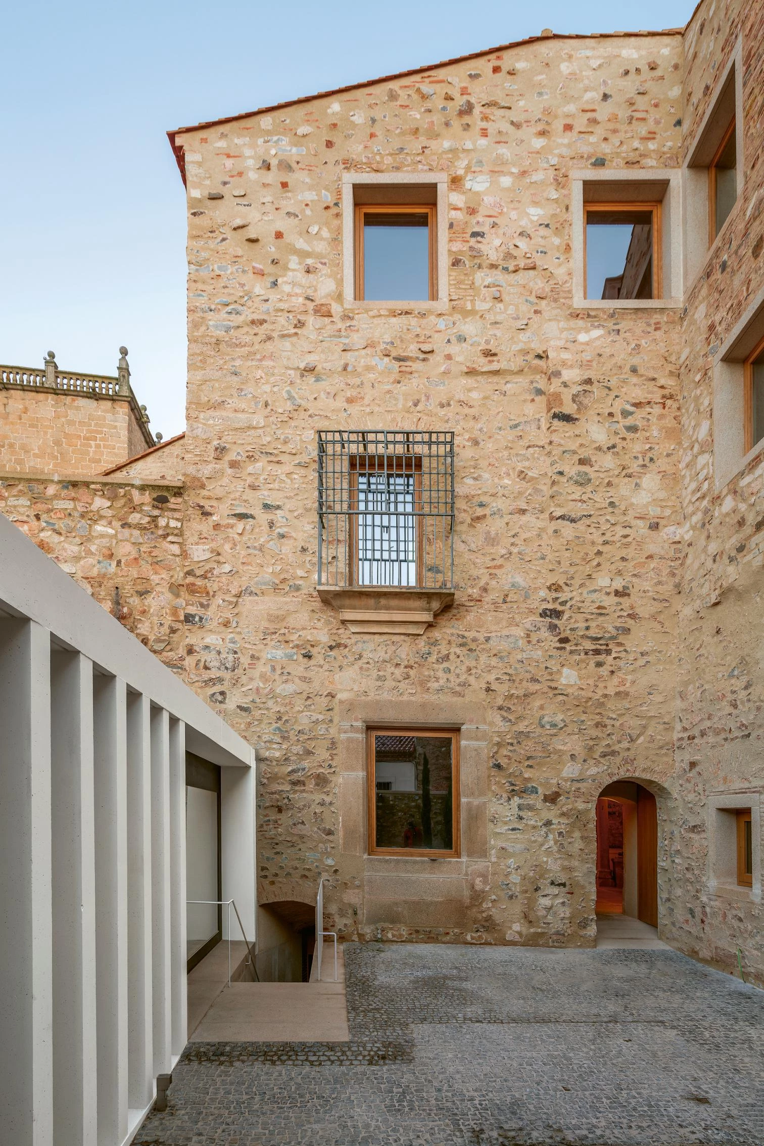 La rehabilitación define con claridad una sucesión de espacios en diagonal que va desde la calle Ancha a la calle San Pedro, pasando por el zaguán abovedado —en el que se ha incluido una obra site-specific del artista portugués José Pedro Croft—, el atrio asimétrico con una sucesión de bóvedas de ladrillo que se apoyan sobre dos columnas dóricas, y el patio exterior ajardinado, que cuenta con una pequeña alberca. Se complementa la intervención con el recrecido de la torre, buscando contribuir a la mejora del perfil de la ciudad, especialmente en la calle Ancha.
