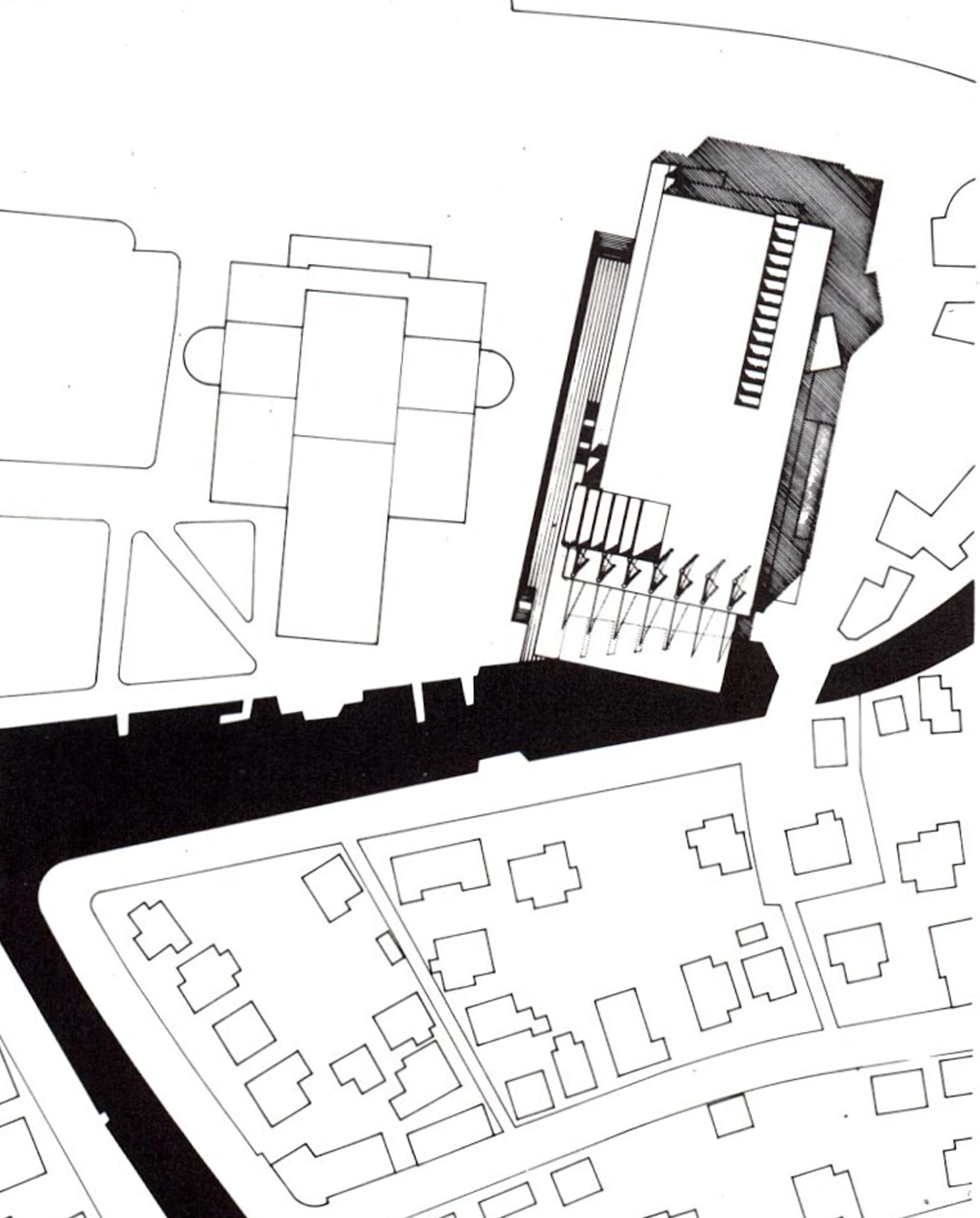 Aunque está lejos de Venecia, este edificio debería tener los atributos de un palacio veneciano, lo cual significa, entre otras cosas, poseer esa permanente conciencia de la misteriosa presencia de esta ciudad. Hay que subrayar que el Palazzo del Cinema es por encima de todo un lugar de encuentro, un punto de reunión y un mercado. Esto significa que los vestíbulos del edificio pueden entenderse como espacios abiertos; los cafés y los restaurantes, como locales de reuniones; y los despachos de los productores, como puntos de compra-venta.