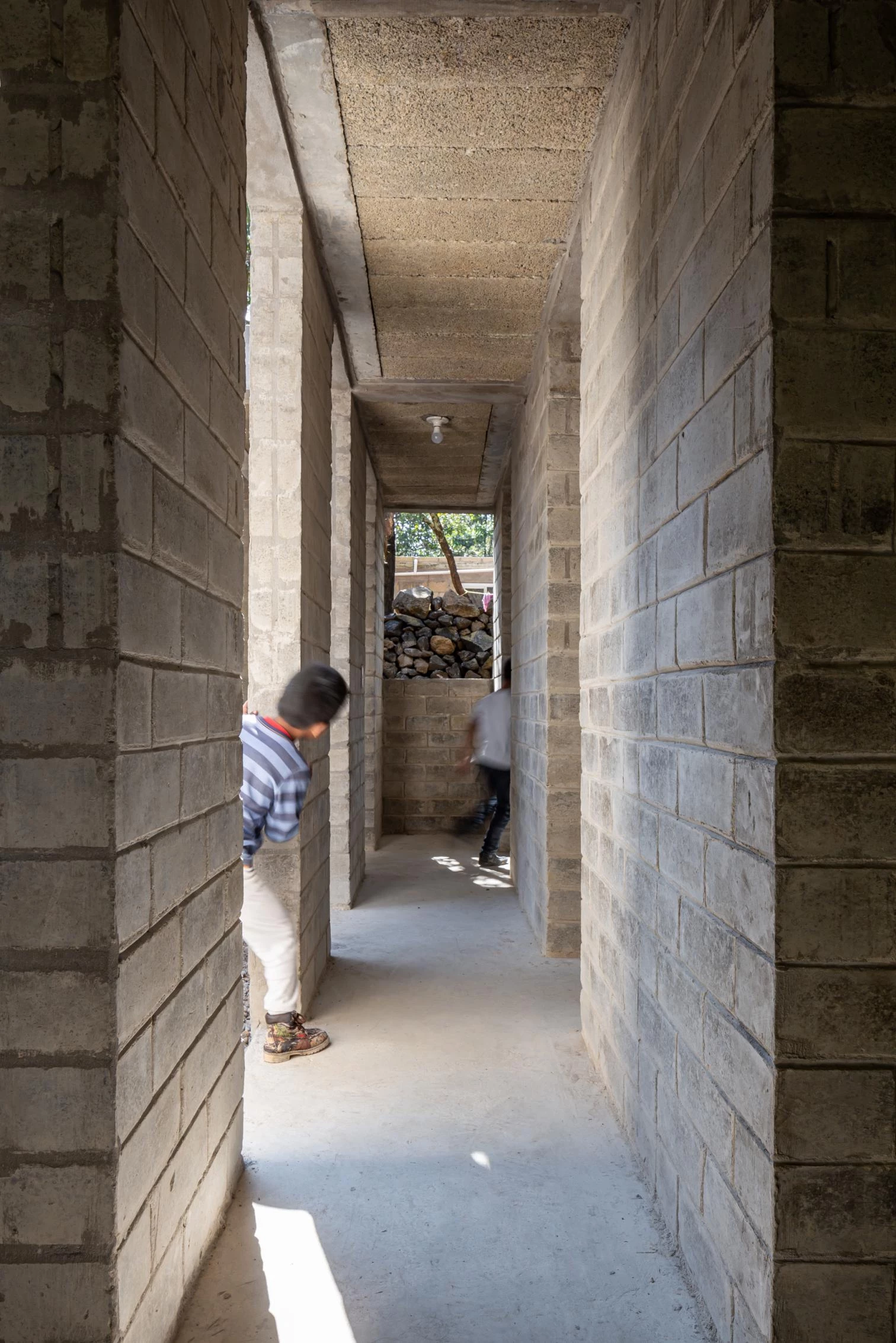 Para proyectar las viviendas, los equipos visitaron a las familias asignadas para conocerlas y detectar las necesidades específicas de sus integrantes. Con un presupuesto reducido y 45 metros cuadrados, esta casa en Ocuilan es para Axel, un niño de 8 años que vive con sus abuelos. La abuela de Axel limpia diariamente nopales, plantas de la familia de las cactáceas, por lo que pedía contar con un espacio exterior que tuviera relación directa con la cocina. Otro requerimiento era incorporar una tercera habitación para poder alojar a algún otro familiar en caso de necesitarlo.