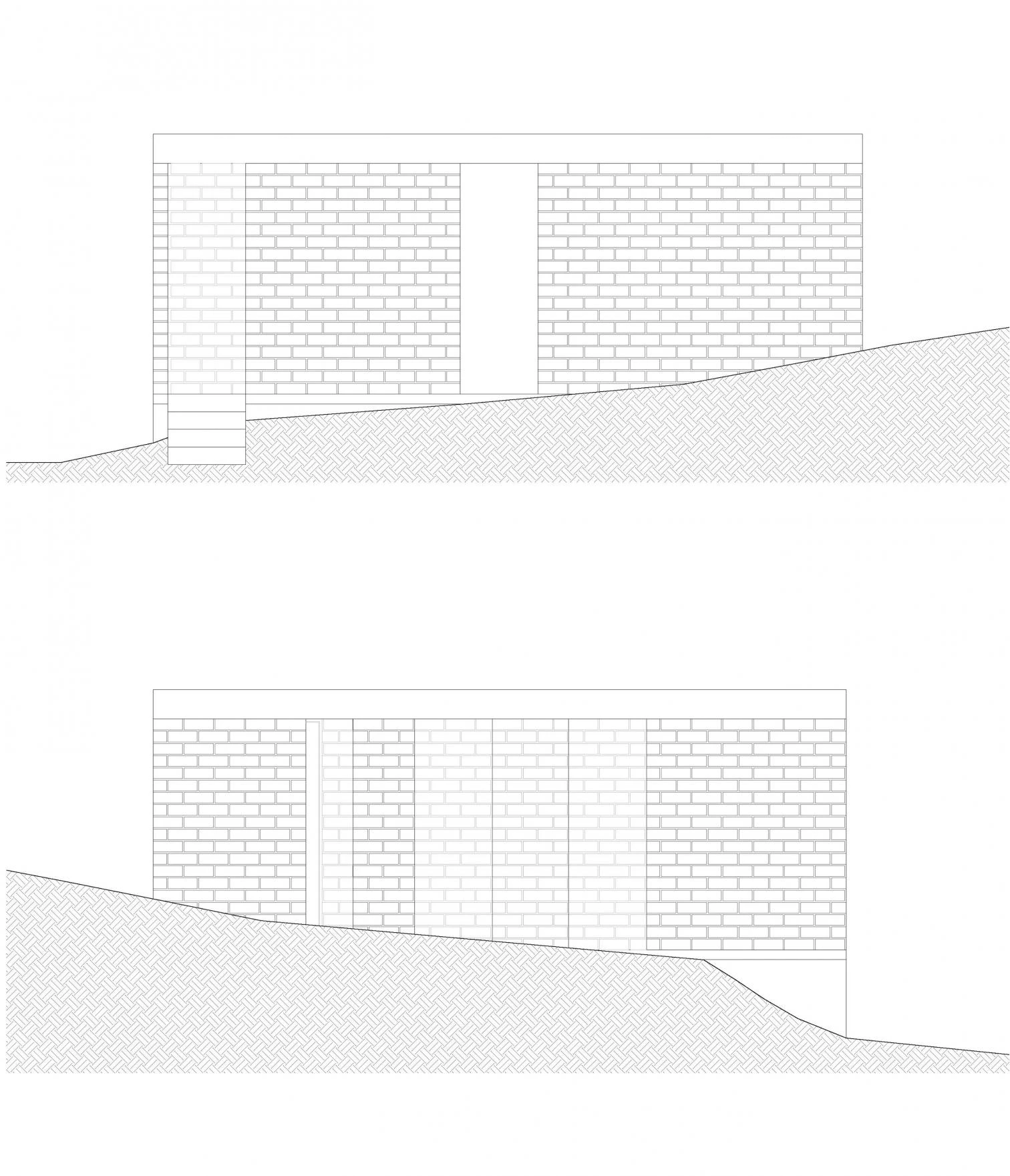 El proyecto está configurado por una serie de muros que enmarcan las vistas, aportando sensación de amplitud y profundidad a un espacio reducido. La planta de la vivienda es sencilla, un cuadrado de 7 metros por lado con un pequeño patio central. Las tres habitaciones están dispuestas en la parte trasera de la casa, mientras que la cocina y el patio se colocan al frente del proyecto.