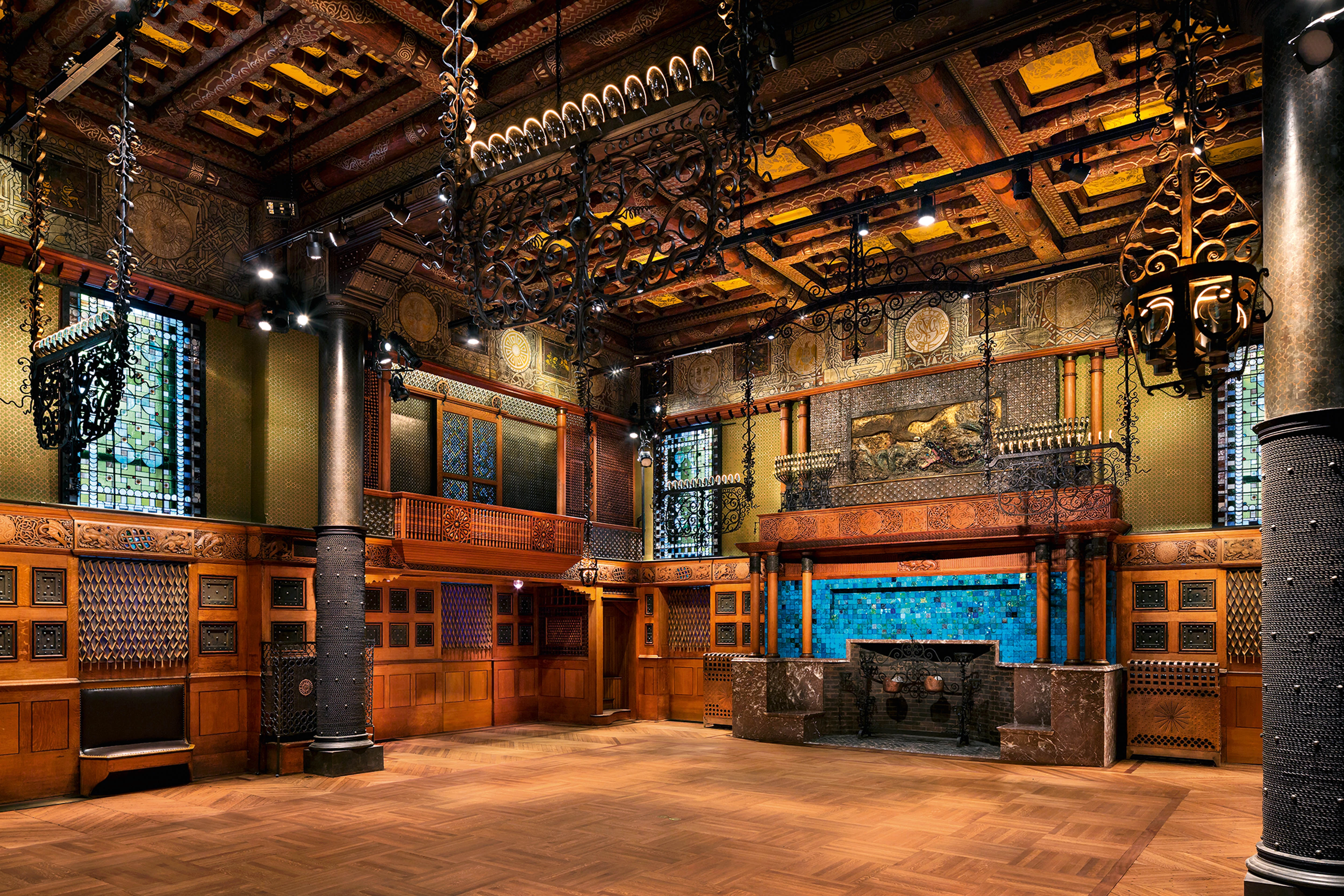 La luz es otro elemento importante a la hora de dar a las diferentes salas cierta homogenidad. Dado que las lámparas de araña y las luminarias de pared originales se perdieron en su mayoría, los arquitectos desarrollaron un lenguaje propio. El carácter de la iluminación original se ha conservado, pero traducido a un lenguaje contemporáneo. El tamaño y cualidades de las lámparas de araña originales se consideraron esenciales para definir la atmósfera de cada sala. Por ejemplo, en la sala de la Compañía D las lámparas tienen su equivalente en las estructuras de tubo de cobre que evocan el lenguaje y el carácter aditivo original, y admiten nuevas luminarias en función del emplazamiento. En la sala de la Compañía E, por su parte, se pensó en utilizar luminarias de cobre montadas de manera que la sombras arrojadas por los tubos dibujasen sobre las paredes el dibujo de los elementos de estuco perdidos durante las transformaciones del edificio, pero al final se optó por una lámpara de araña central y descolgable, más adecuado para las características de la sala.