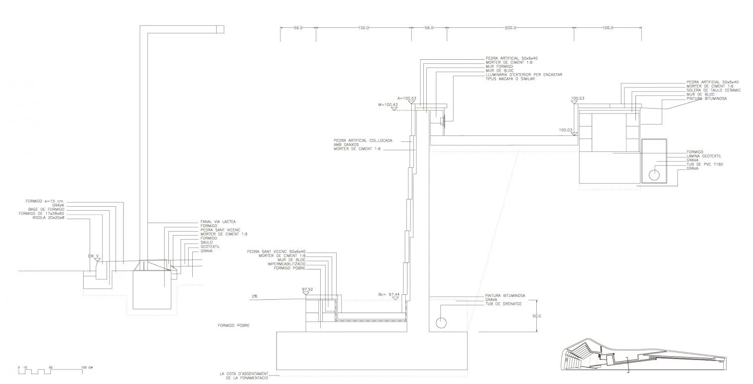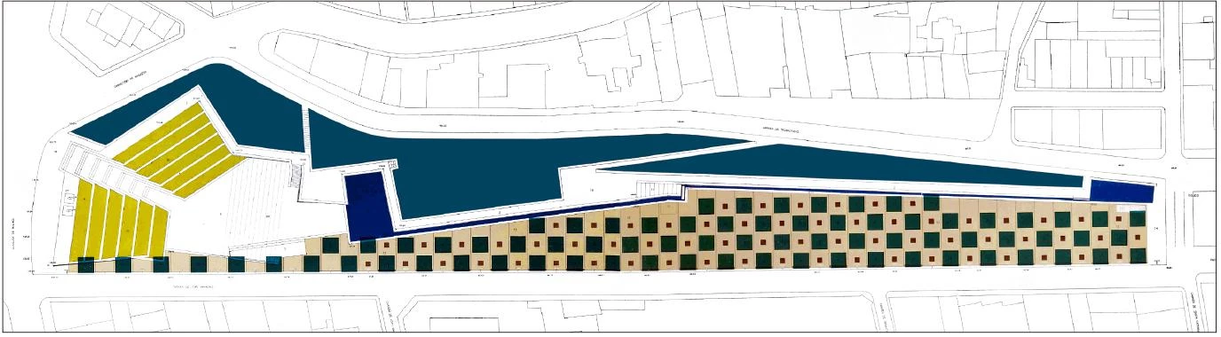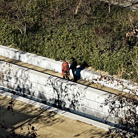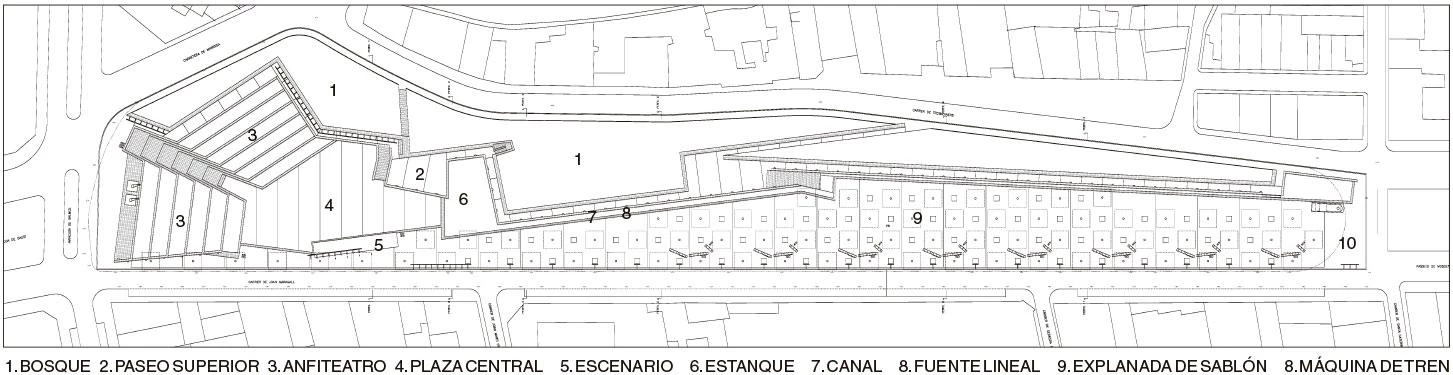 A la manera de los antiguos jardines italianos como Villa d’Este o Villa Adriana, el muro se convierte en el protagonista del parque acumulando las anécdotas clásicas que, como divertimento, puntúan el recorrido del visitante. Jardín y paseo conviven y construyen un fragmento urbano.