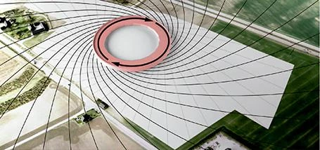 El centro científico Max iv, es un laboratorio de Luz de Sincrotrón para el nuevo campus tecnológico de la Universidad de Lund, en las afueras de la ciudad del mismo nombre, en el sur de Suecia. Para el buen funcionamiento de un acelerador de partículas es importante encontrar unas condiciones climáticas constantes, una regularidad térmica, y un terreno estable que absorba las vibraciones que se produzcan en su entorno; en este caso, la ligera pendiente del solar ayudaba a transmitir los impulsos de una autopista cercana, lo que generaba un problema para el edificio. Se desarrolla por tanto un proyecto que reestructura —gracias a avanzados sistemas de diseño paramétrico— todo el terreno siguiendo un patrón basado en las longitudes de ondas de las vibraciones existentes. Esta solución permite, además, administrar el agua de lluvia creando pequeños valles que la almacenan, contribuyendo así a la agricultura local. El resultado final es una superficie verde oleada que alterna pastos con zonas de plantación desarrollado en colaboración con la Universidad de Ciencias Agrícolas de Alnarp. Para la construcción el modelo 3D del paisaje se traslada al GPS con el que las excavadoras trabajan, empleando modelos informáticos para optimizar los masivos movimientos de tierra, y reducir su almacenamiento.
