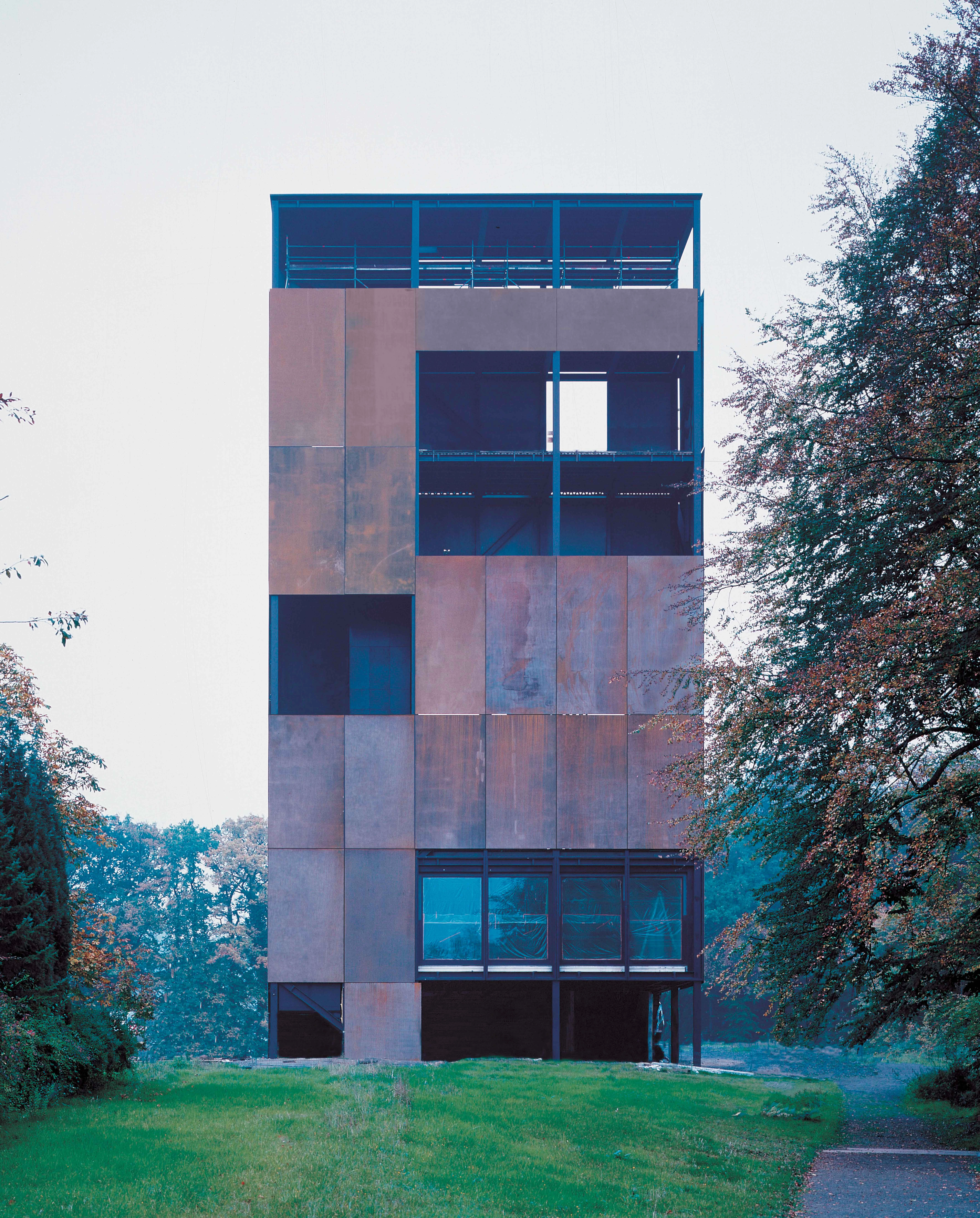 El páramo donde tuvo lugar la batalla de Varus—en la que los guerreros teutones tendieron una trampa a las tropas romanas— es hoy un importante centro de investigación arqueológica cuyos fondos debían ser dados a conocer al público. Con el fin de enmarcar los restos encontrados dentro de su contexto, el proyecto para su musealización incluye toda una serie de medidas de recuperación del paisaje que son inseparables de lo edificado. Para hacer comprender la estrategia de la batalla, el bosque actual se prolonga hacia el sur reproduciendo la antigua barrera de robles, mientras una tala selectiva ha devuelto a la zona norte el carácter disperso que tuvo la vegetación. La altura del baluarte germano y la empalizada de la parte superior serán recreadas con mástiles de hierro colocados cada metro, mientras planchas de hierro distribuidas al azar insinúan el recorrido de las tropas romanas al rodear ese terreno infranqueable que es el páramo. Las posiciones y las vías de retirada de las tropas germanas se ponen de manifiesto mediante caminos pavimentados con cortezas de madera. Una red de senderos, que reproduce la división actual de la propiedad agraria, se superpone a este paisaje, permitiendo al visitante pasar de un bando a otro y moverse como si estuviera en el frente de batalla.
