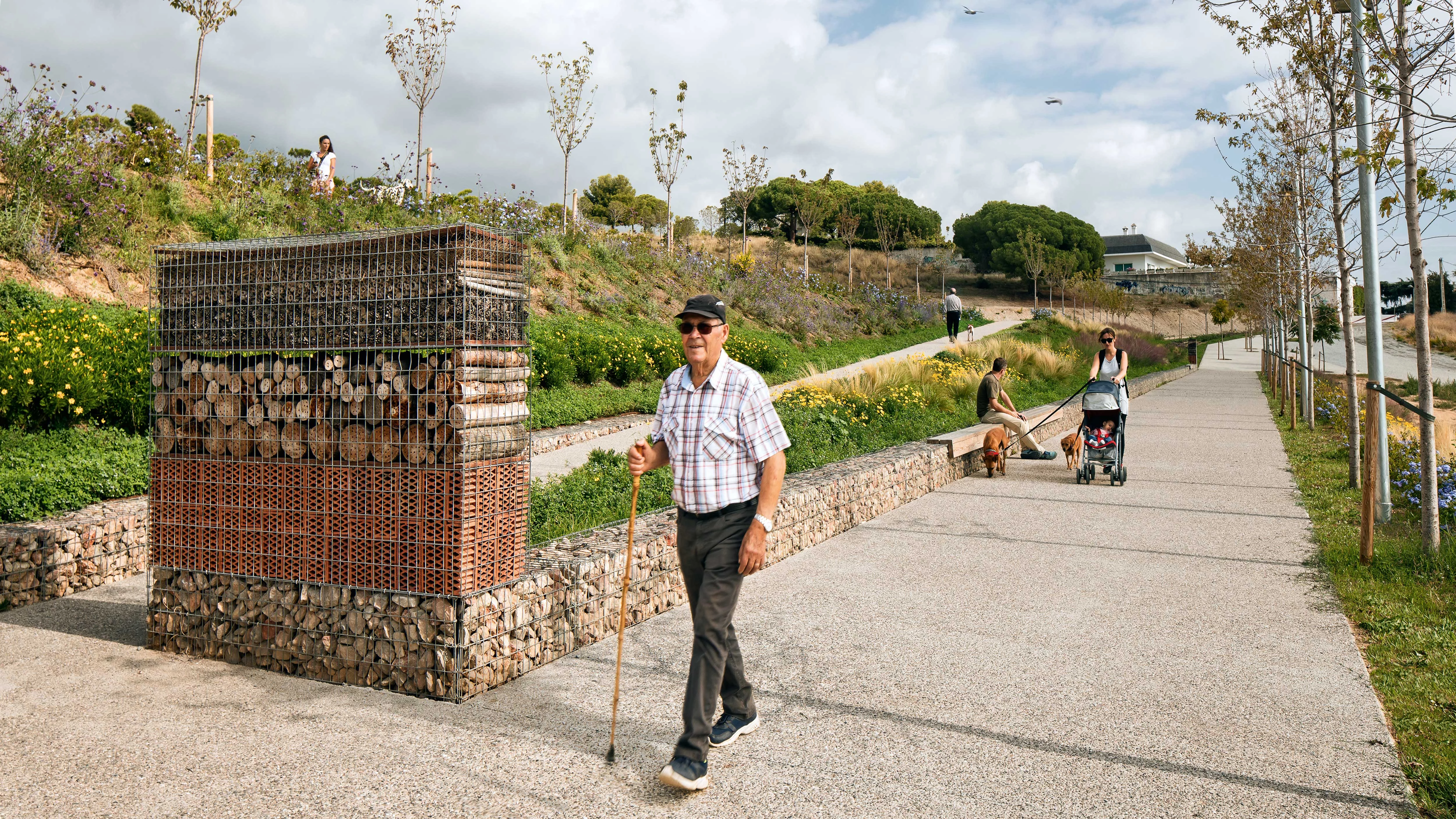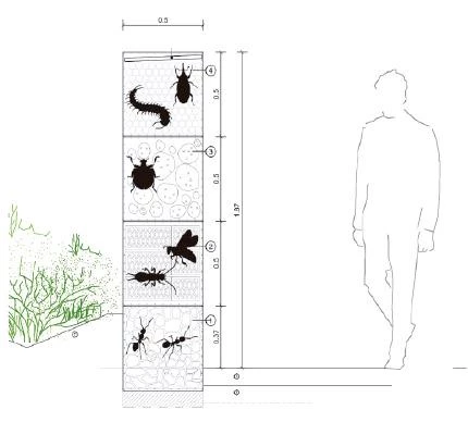 Diseñado también por el estudio, el parque acoge un Hotel de Insectos: un refugio y lugar de hibernación artificial que permite que arañas, escarabajos, grillos, mantis religiosas, hormigas y otras especies se instalen con el fin de reproducirse en un espacio tranquilo y protegido. Se trata de una estructura construida con materiales naturales —piedra, cerámica, madera y piñas— dividida en estratos para diferentes tipos de anidamientos.