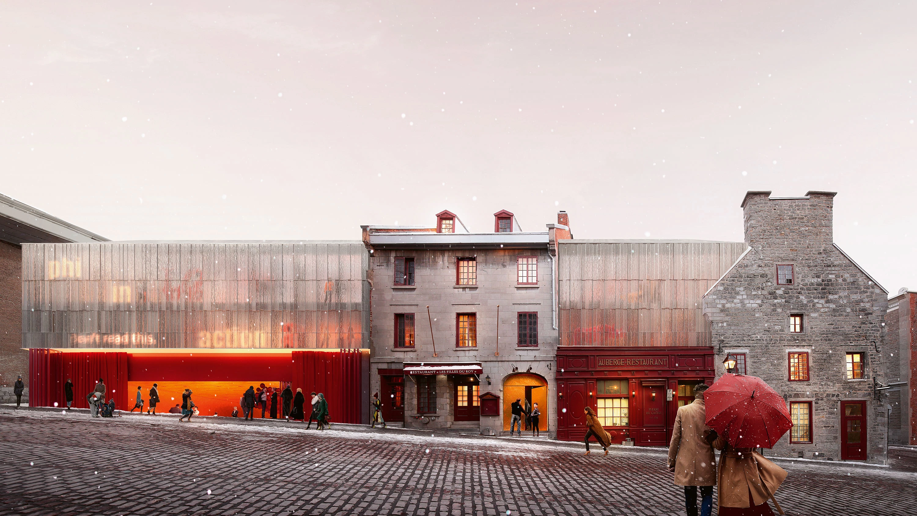 Como un palimpsesto construido, un extenso volumen de vidrio impreso queda suspendido entre los edificios existentes. Tras la fachada, diferentes espacios artísticos se abren a la vida y la interacción social, tejiendo una red de conexiones con el entorno...[+]