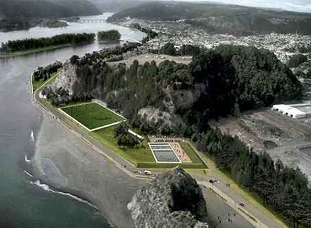 El terremoto de grado 8,8 que sacudió Chile en 2010 tuvo un fuerte impacto sobre las construcciones, pero la mayoría lo soportaron sin llegar al colapso; sin embargo, el tsunami que llegó después asociado al temblor resultó altamente destructivo por la falta de previsión ante este tipo de desastres. La ciudad de Constitución, localizada en la desembocadura del río Maule y abierta hacia el océano Pacífico, quedó destruida casi por completo. El gobierno puso en marcha entonces un plan de reconstrucción urbana que debía quedar definido en los cien días posteriores a la catástrofe. Inmediatamente, se inició una consulta popular sobre las críticas de los ciudadanos hacia su entorno, y las respuestas revelaron dos peticiones mayoritarias: mejorar la cantidad y calidad del espacio público en la ciudad, y crear acceso democrático al río. El plan da respuesta a estas reivindicaciones y las enmarca dentro del objetivo concreto de proporcionar protección ante los posibles tsunamis. Para ello, en vez de emplear infraestructura pesada para hacer una barrera contra el mar, el plan introduce una banda costera de parque con una amplia red de equipamientos públicos y algunas intervenciones estratégicas en el tejido urbano. La franja del litoral emplea la vegetación y el relieve como los elementos de fricción que pueden mitigar la energía de las olas.