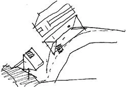 El programa social —formado por el centro de control, salas de reuniones, servicios, vestuarios, etc.— se sitúa bajo la plataforma principal en una pastilla enterrada entre los dos cilindros que contienen los motores auxiliares, y se abre hacia el exterior mediante una ventana apaisada de un metro de alto y 25 metros de largo. Todo ello contribuye a que el edificio quede prácticamente oculto entre el puente de hormigón firmado por el ingeniero Edgar Cardoso, en primer plano, y la presa que cierra el valle como telón de fondo. De manera complementaria, el proyecto cuenta con un puesto de observación, situado estratégicamente en lo alto de la montaña, y con una torre de agua que tiene forma de cono invertido, cuya simplicidad volumétrica contrasta con la riqueza natural del entorno.