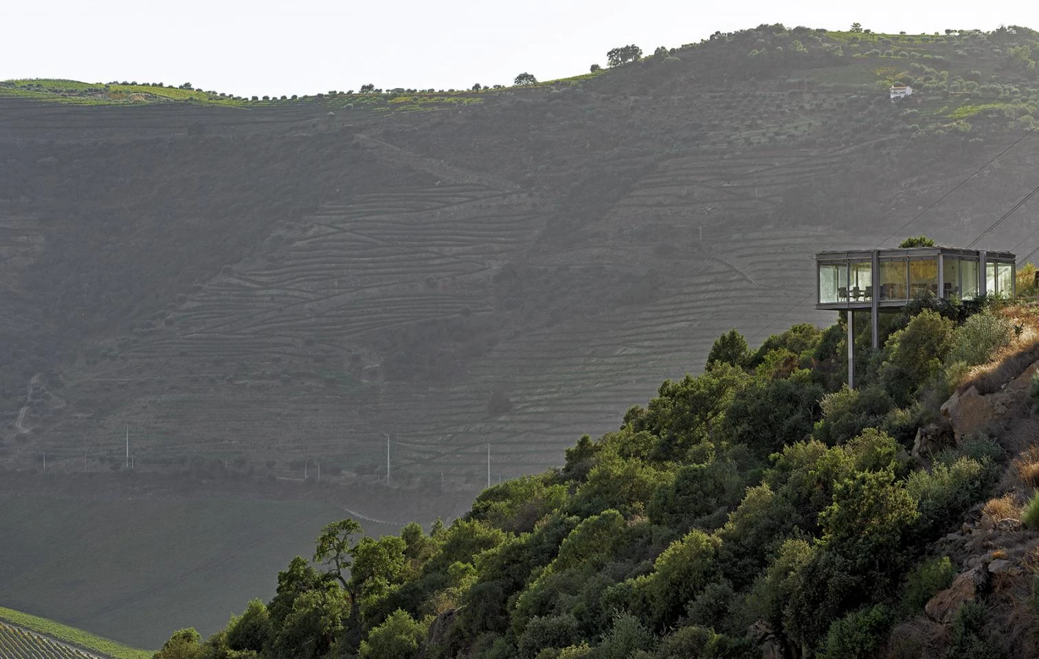 La región vitícola del Alto Duero, famosa por la producción del vino de Oporto, fue declarada Patrimonio de la Humanidad por la Unesco en 2001, en la categoría de paisaje cultural. La construcción de una central hidroeléctrica para aprovechar la energía del río Tua —un afluente de la margen derecha del Duero— puso en peligro esta clasificación, debido al impacto visual y ecológico que tendría sobre el territorio. Para atenuar los efectos negativos de esta infraestructura, la empresa promotora encargó a Souto de Moura un proyecto que minimizase la presencia de la intervención en su entorno. El objetivo era eliminar el carácter de ‘edificio’ de los nuevos volúmenes, reduciendo su imagen a la de una ‘máquina’ que se inserta en el paisaje.