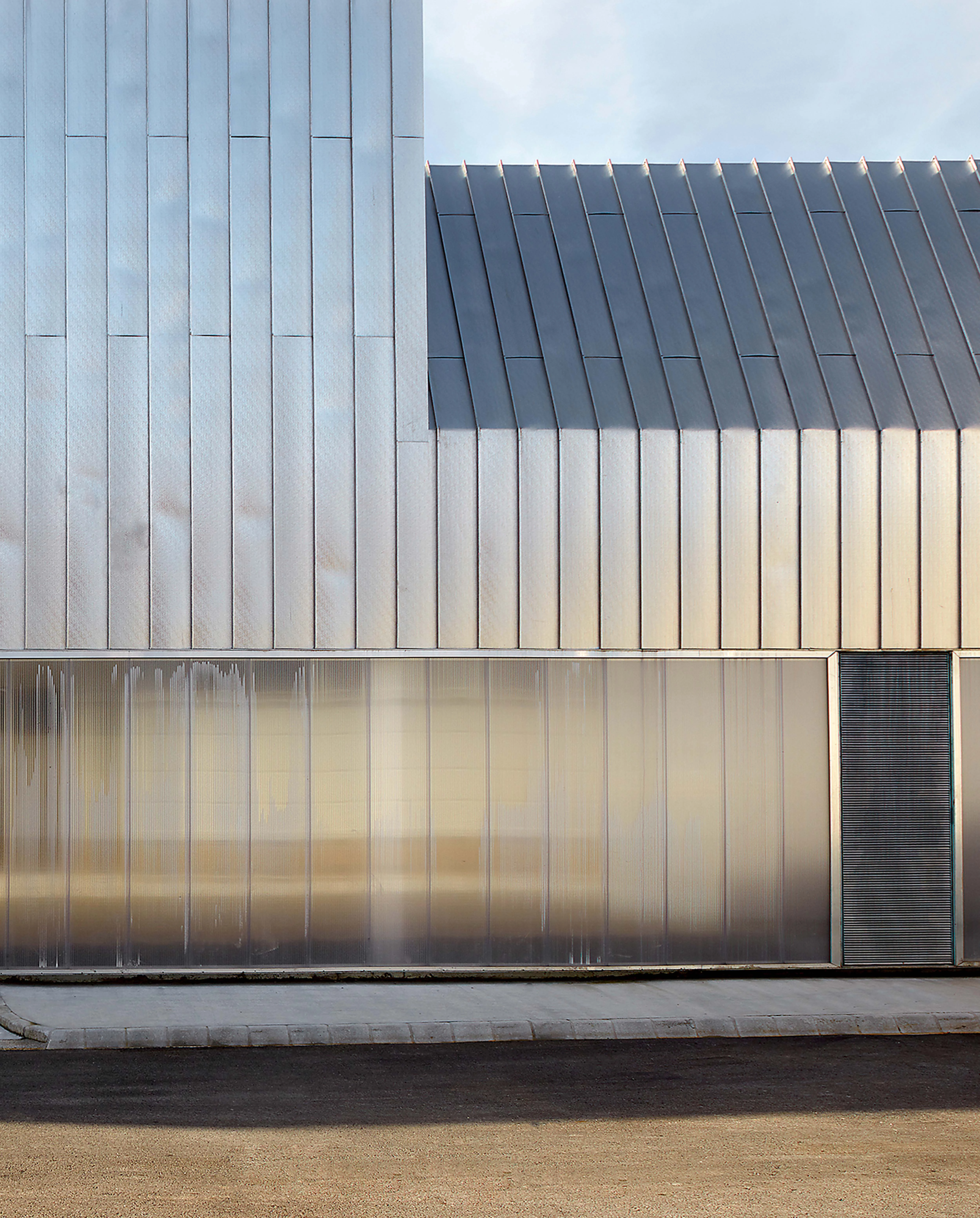 Dos de las piezas que se incorporan, los edificios de reactivos y pretratamiento, se resuelven con estructura metálica apoyada sobre cubas de hormigón in situ, y se revisten con aluminio gofrado, para desmaterializar los volúmenes en el entorno... [+]