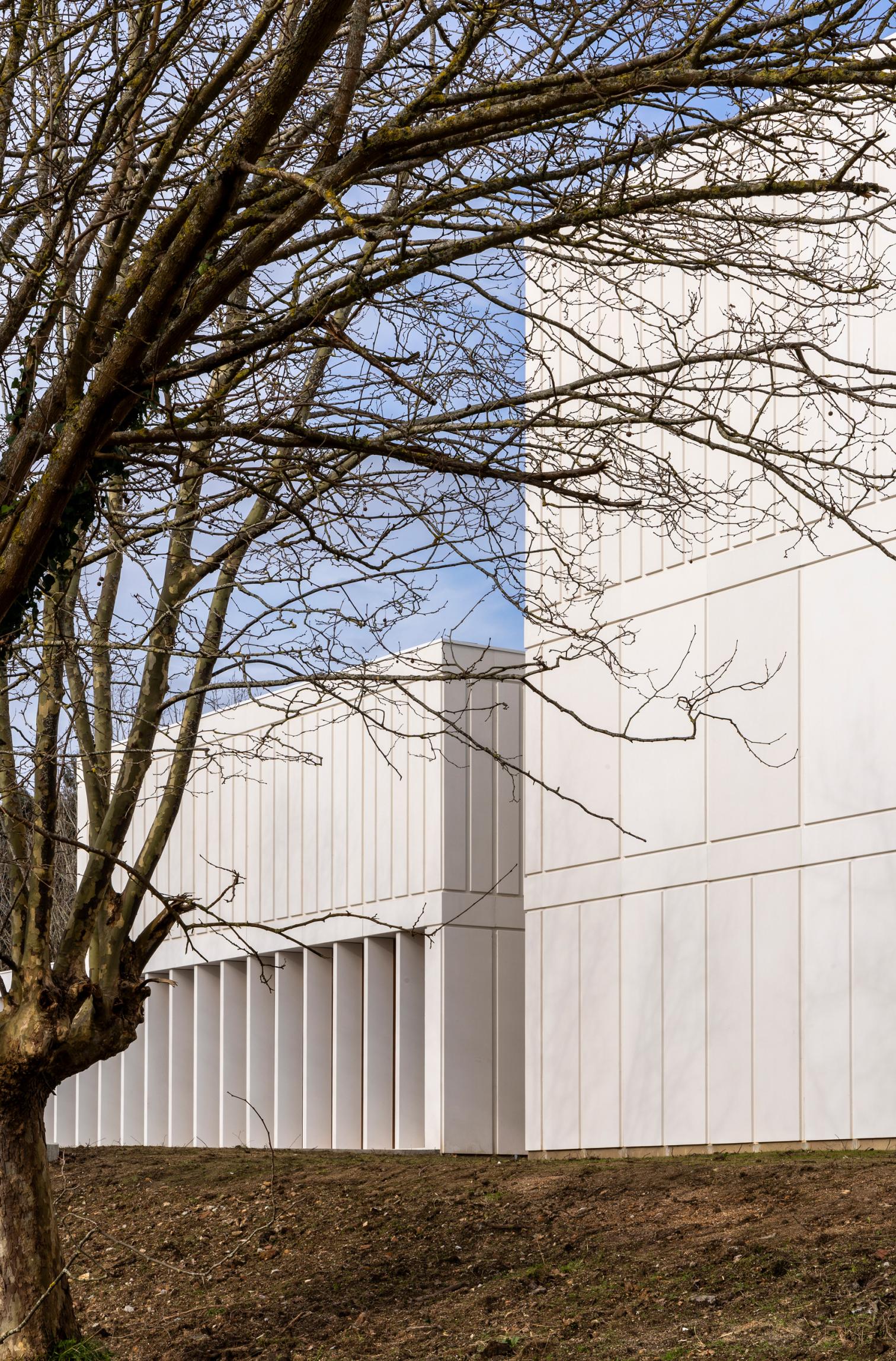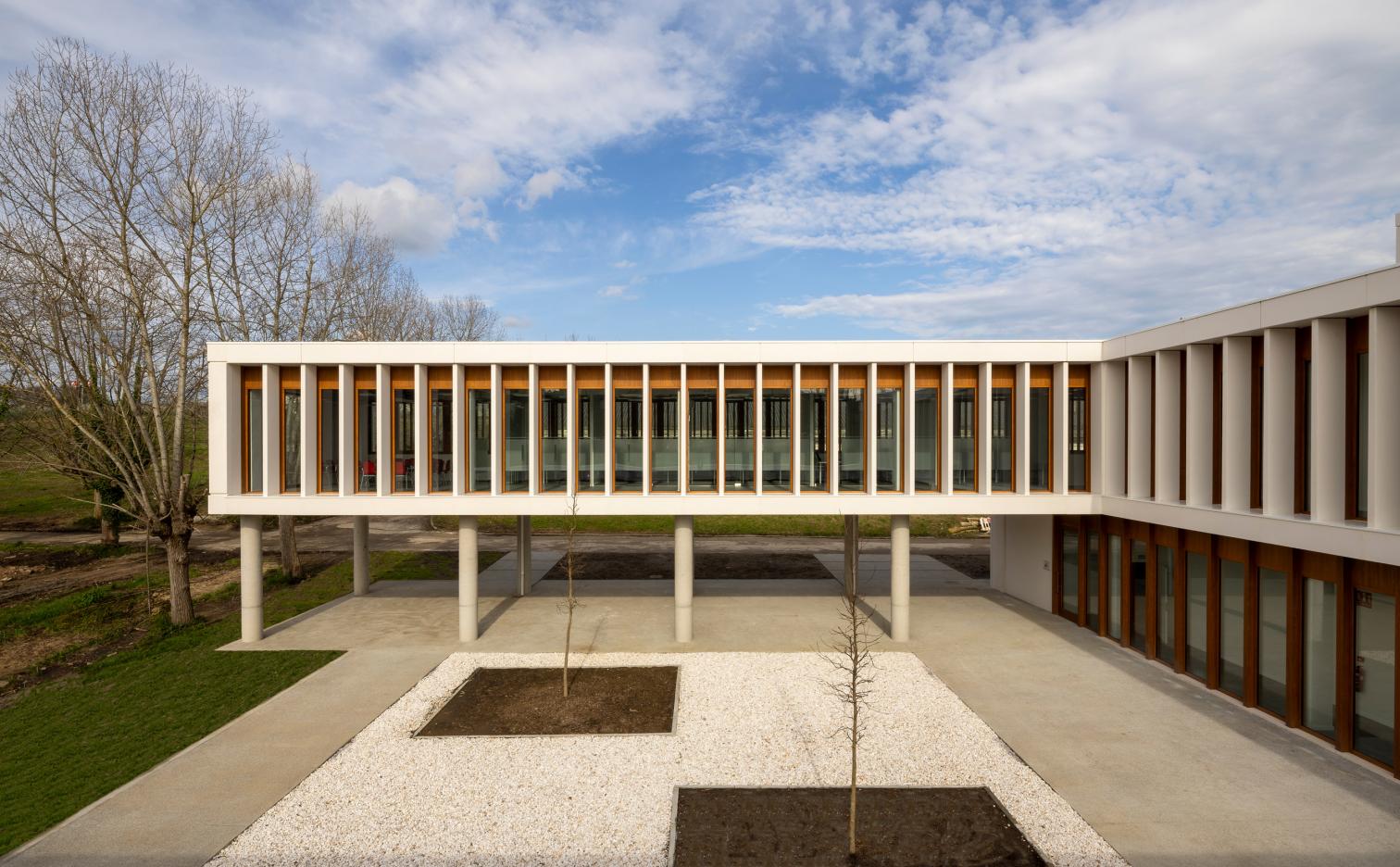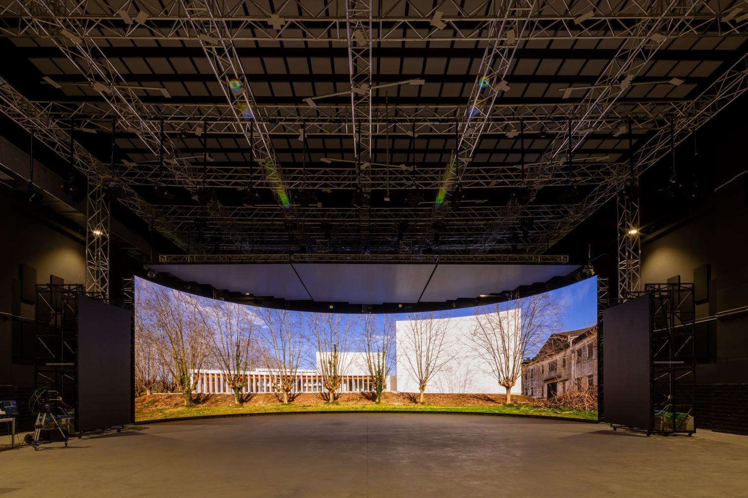 En el plató de producción virtual se generan entornos inmersivos que recrean con precisión escenarios, tanto reales como ficticios, e integran en tiempo real elementos físicos, favoreciendo la producción, creación y postproducción de contenidos audiovisuales para cine, televisión y otros medios digitales. Por este motivo, la nave está diseñada como una caja hermética de grandes luces, que impide la entrada de luz y sonido, realizada con estructura de hormigón prefabricado. Por su parte, el edificio auxiliar se realizó con hormigón in situ, y ambos presentan fachadas modulares de piezas prefabricadas. En su conjunto conviven un espacio cerrado e insonorizado para la producción virtual con otro más permeable y luminoso, generando contrastes visuales y funcionales.