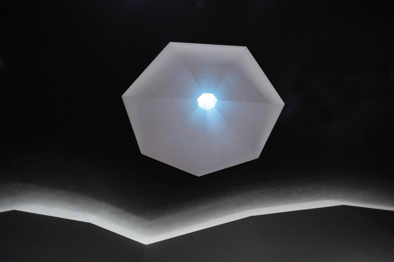 El espacio incorpora así escultóricas sombras que dialogan con la instalación sonora generativa Abstract Music, del compositor Keiichiro Shibuya. Esta obra se recompone continuamente en tiempo real, apareciendo y desapareciendo mediante procesos algorítmicos. A ello se suman dos fragancias complementarias creadas por el artista olfativo Kan Izumi, que refuerzan la dimensión sensorial del conjunto. En lugar de sincronizarse, luz, sonido y aroma generan leves disonancias que agudizan la percepción.