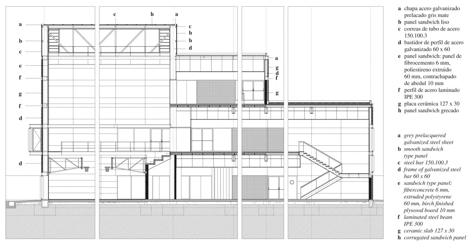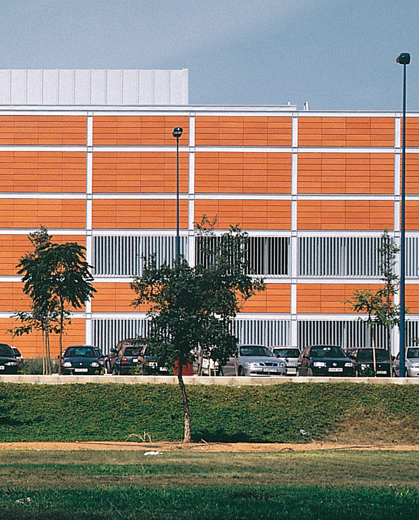 La retícula estructural y el revestimiento cerámico proclaman que la imagen del edificio se deriva del sistema constructivo adoptado. Y la disposición en tres bandas funcionales del programa rompe la monotonía de la caja.